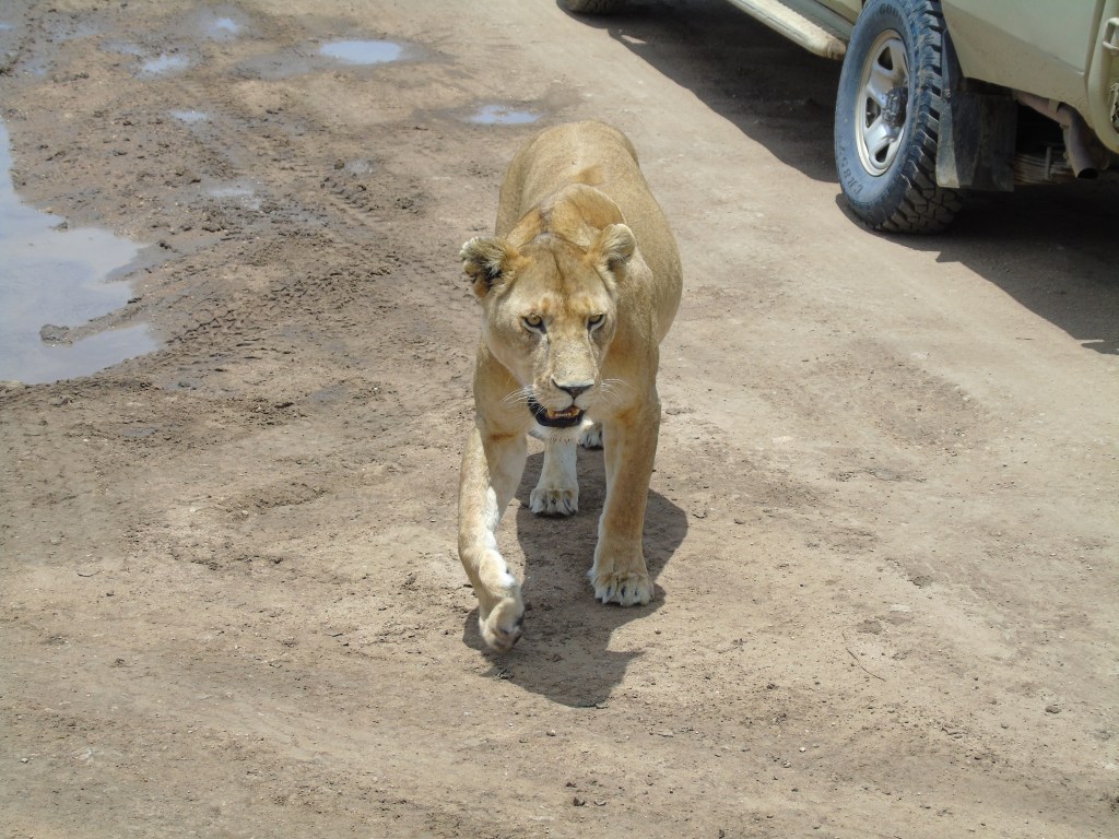 Dormir al Serengeti en tendes és molt millor que allotjar-se a un lodge a les afores del Parc Nacional perquè pots passar moltes més hores fent safari i perquè a la nit sents tots els animals molt més a prop. Tan a prop que la primera nit uns hipopòtams gairebé ens tomben la tenda i la segona nit vam tenir “l’ensurt”. Havíem vist una baralla de girafes a escassos metres del campament, així que ens van avisar que era probable que la girafa que perdés quedés impedida i a mercè dels depredadors. Durant el sopar sentíem especialment a prop els lleons, però no li vam donar massa importància, fins que van venir corrent tots els staffs del campament amb llanternes. Ens van dir que estava tot bé, però les cares deien tot el contrari. Vam acabar de sopar, vam anar cadascú cap a la seva tenda i no en vam parlar més, però el dia següient el nostre guia ens va confirmar que s’havien espantat perquè 5 o 6 lleons estaven massa a prop del campament.