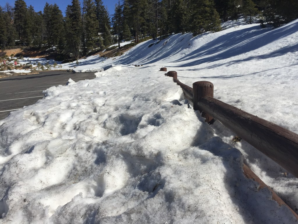 Ens trobàvem a Mamooth Lakes, arribant de nit a un hotel envoltat d’una capa de neu de gairebé un metre. De fet, havien apilotonat neu a la piscina creant una imatge ben surrealista, com si un iceberg sortís de dins. Al fer el checkin ens van explicar que un ós havia (LITERALMENT) destrossat un cotxe perquè havia sentit olor de fruita i un cop l’havia rebentat, havia descobert que l’olor provenia d’un suavitzant de maduixa. A les fotos que havíen fet com a avís pels nouvinguts es definien les rodes però la resta, eren tot de ferros torts i aixafats. Dels vidres, cap rastre. Total que ens van venir a dir que no deixessim res que pogués atraure els ossos al cotxe i si, com era el cas, teníem una habitació a peu de carrer, vigilessim també perquè rondaven per allà. No és que tinguessim menjar, és que dúiem patates fregides, cecines de diversos tipus, fruites i algun embotit. Vaja, un festí per a potencials óssos. Vam amagar-ho tot al lavabo, que era la zona més allunyada de la porta, però ni així vaig aconseguir relaxar-me per dormir dels nervis d’imaginar un ós rascant la porta. La Mar, som sempre, va roncar tranquilament.