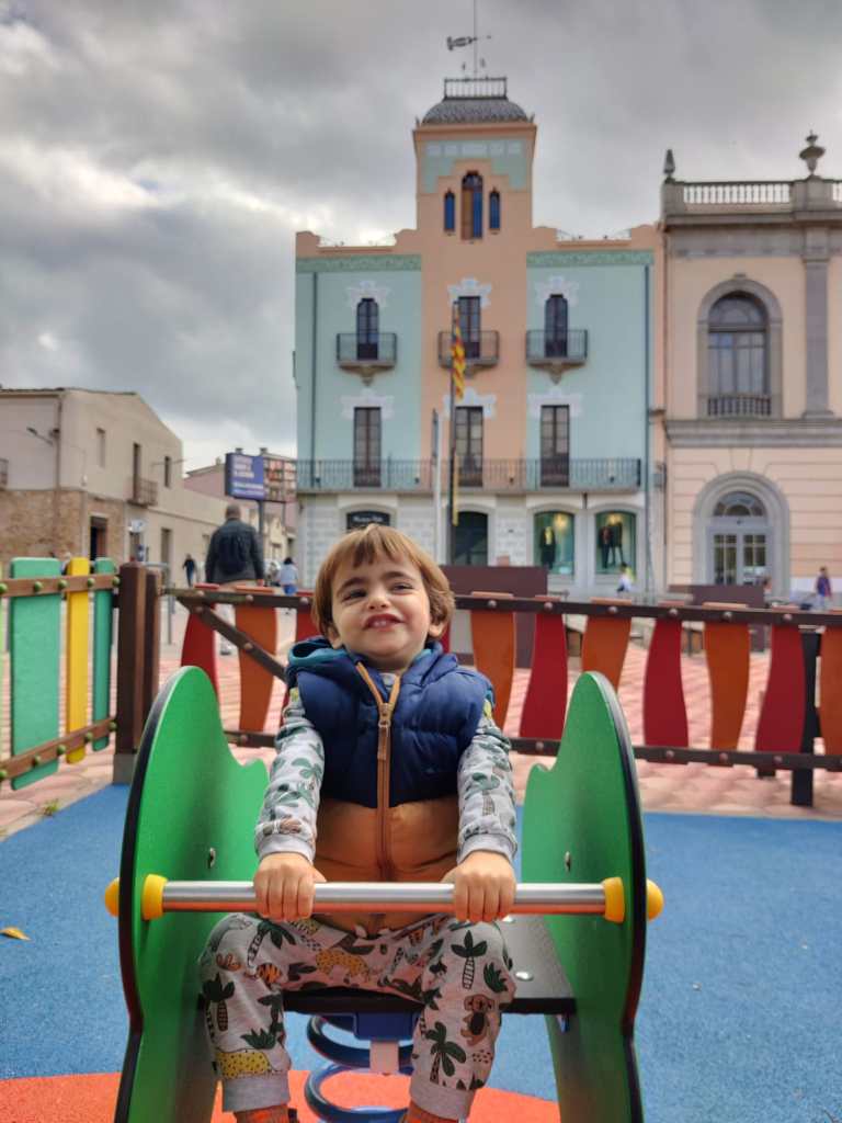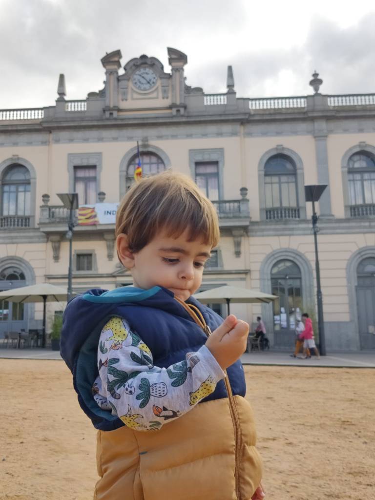 Nosaltres la part de joc la vam fer a l’exterior, a la Plaça Catalunya; així mentre la Greta jugava natros miràvem la façana del Casino. Què bonic…