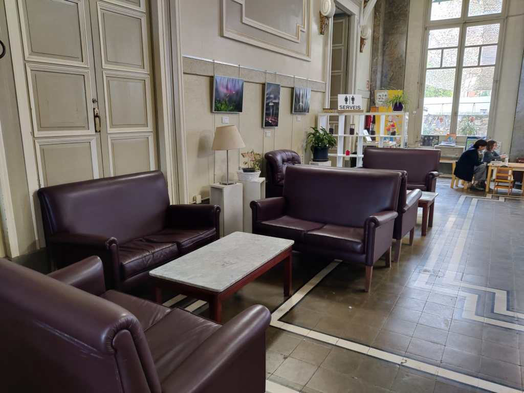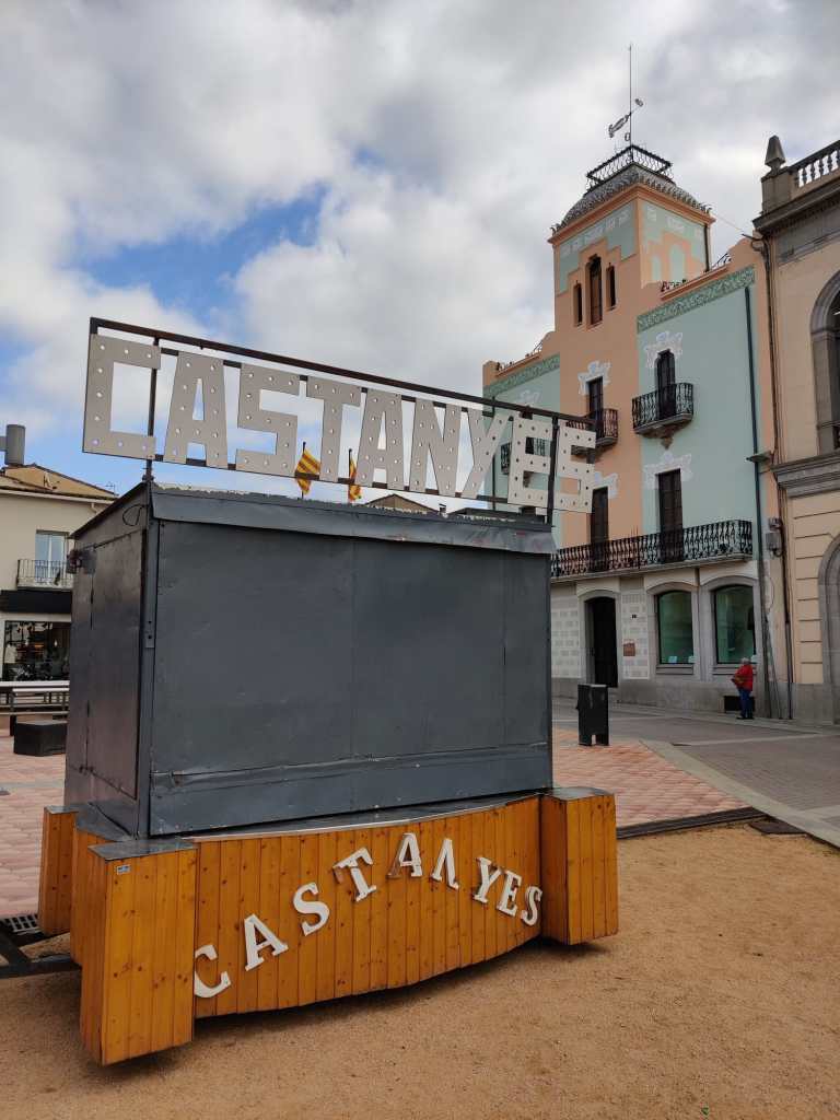 Vam baixar cap al cor del poble i ens vam trobar amb la preciosa façana del Casino Llagosterenc. Construït a mitjans del segle XIX en estil noucentista, era el punt de trobada en un moment àlgid de l’associacionisme molt lligat a la indústria del suro. Us recomano que hi entreu, feu un cafè, un cacaolat o un quinto i us acosteu a la petita zona infantil on teniu contes i vàries distraccions per gremlins petits.