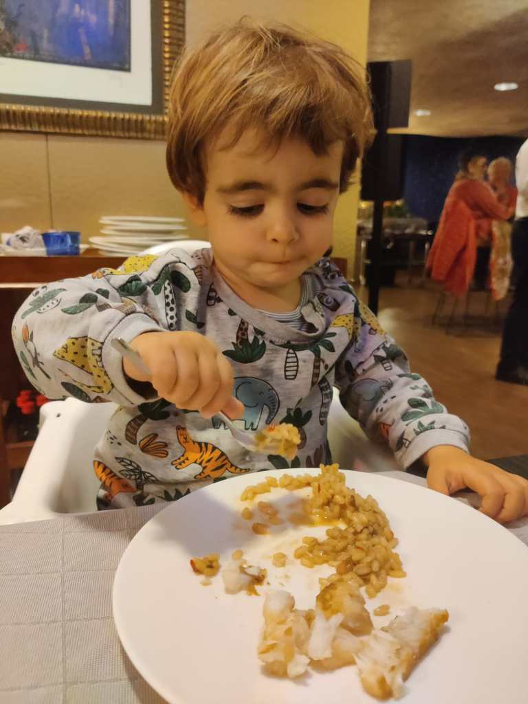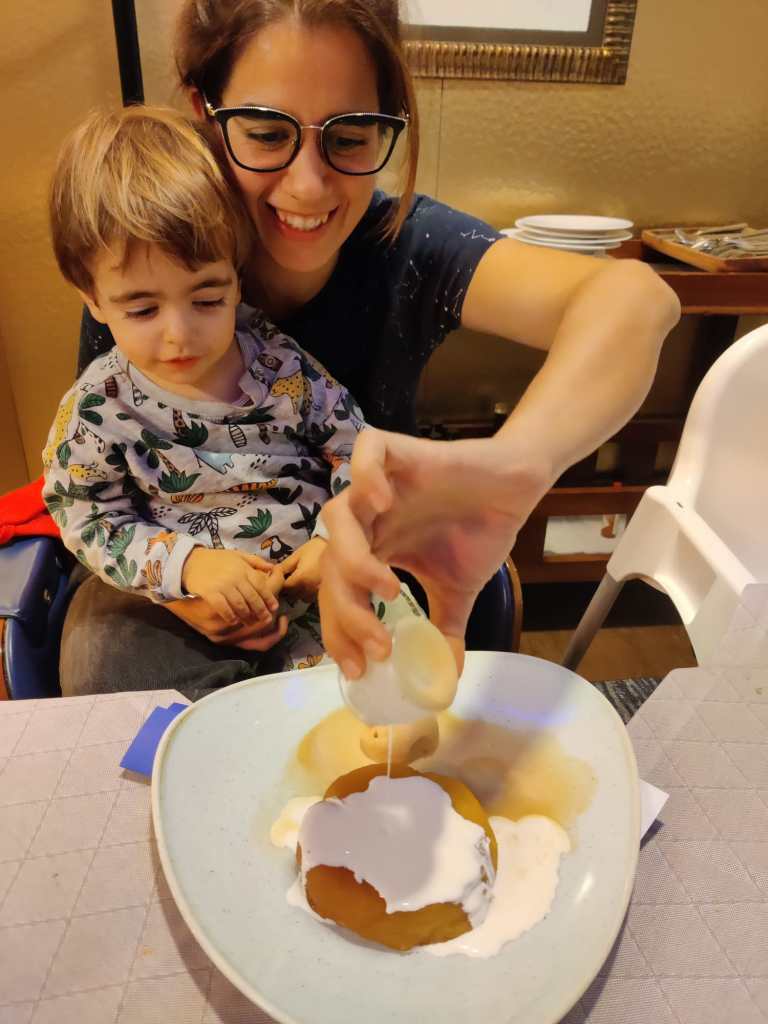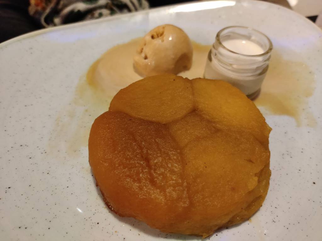 El servei, impecable i vam sopar com a lladres. De primer, ceviche amb fruita de la passió per mi i burrata amb figues per la Mar i de segon, entrecot i una pasta amb parmesà i nous per la Mar. I per la Greta, un arròs amb bacallà que va devorar sense pietat. Vam tastar també un Enate boníssim i de postre una Tatin i uns sorbets. Hi ha una espècies de menú en el qual pots triar un plat de cada apartat i surt realment bé de preu.