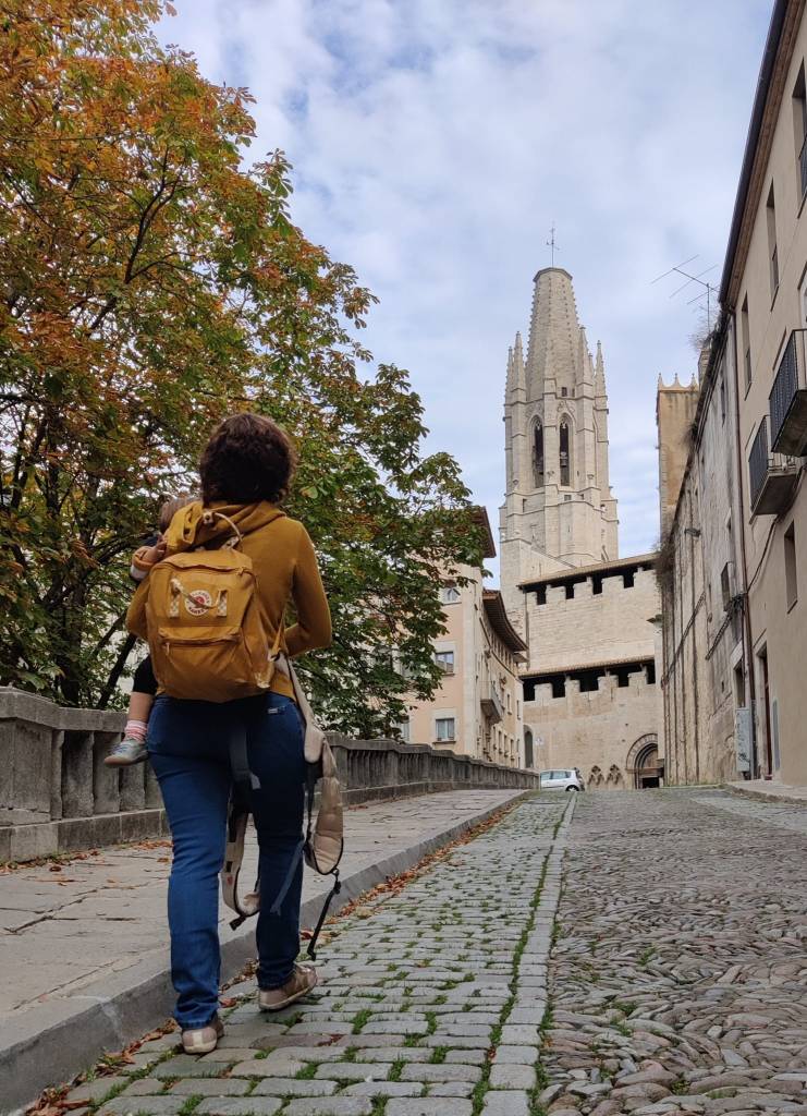 Ens esperava un dia ple d’emocions que va començar amb un passeig pel Casc Antic de Girona durant el qual vam anar explicant historietes a la Greta sobre una de les ciutats més boniques del país. Vam creuar ponts, recórrer carrers i vam tornar cap al parking per agafar el cotxe en direcció al Tren Petit de Fornells de la Selva.