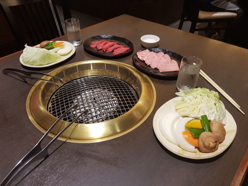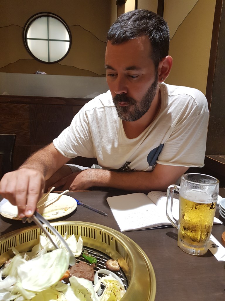 Ens vam apuntar a la llista i ens vam començar a mirar la carta i les diferents opcions. És curiós perquè nosaltres sempre havíem pensat que la carn es fa només estil barbacoa (yakiniku), però també és molt habitual fer-la bullida en un caldo (shabu shabu), cosa que vam trobar desaprofitar una carn tan bona. Nosaltres, yakiniku!