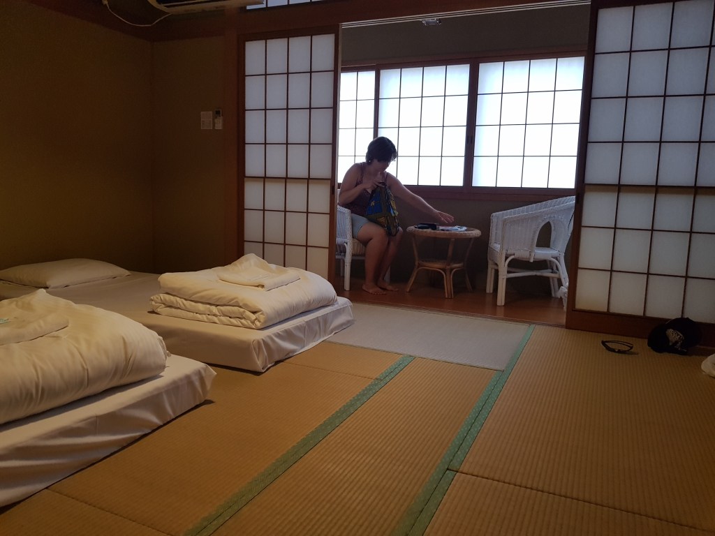 El nostre allotjament, el Kyoto Guesthouse, es trobava prop de l’estació d’Omiya, el que ens va facilitar força el tema de moure’ns. Teníem el trenet d’Arashiyama al costat, fàcil accés a la zona del centre i bona comunicació amb l’est de la ciutat, la més atractiva turísticament. Ah, i una de les millors izakayas en les que vam menjar en tot el viatge a un minut de casa! L’habitació era gegant i molt bonica i, tot i no tenir dutxa ni lavabo dins, en tenia dos al costat que no vam haver de compartir amb l’altra habitació de la planta, així que com si fos nostre.