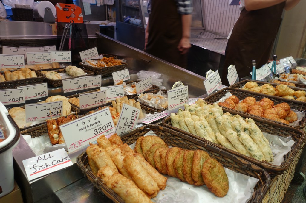 Vam fer el millor que es pot fer en un mercat com aquest: Mirar-ho tot, anar tastant el que ens cridava l’atenció i fer un dinar totalment disfuncional però molt divertit. Vam menjar tempura, mochis, uns fregits de vàries coses i alguna carn. Es veien coses realment originals, sobretot alguns encurtits que no sabíem ni d’on veníen (i amb unes olors totes sospitoses), ens va semblar espectacular i molt autèntic. Aneu-hi i, sobretot, mengeu-hi!