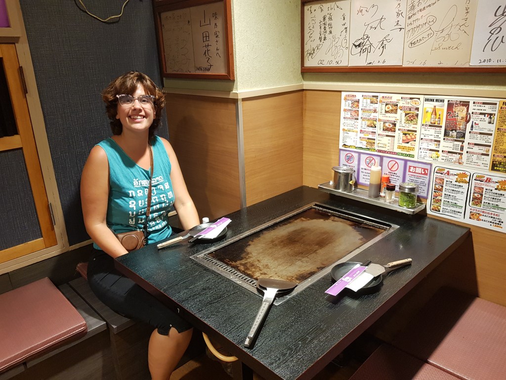 Seguint recomanacions que ens havíen fet i aprofitant que el teníem a 4 minuts de l’hotel, ens vam acostar al Ajinoya, un lloc de referència per tastar els okonomiyakis d’on són més típics (i en la versió que més ens agrada. Recordeu, sempre Osaka, mai Hiroshima!). A més, totes les guies i molts japonesos ens havien parlat d’Osaka com “l’estómac” de Japó, volent dir que és on millor s’hi menja, així que s’havia d’aprofitar i tastar-ho TOT.