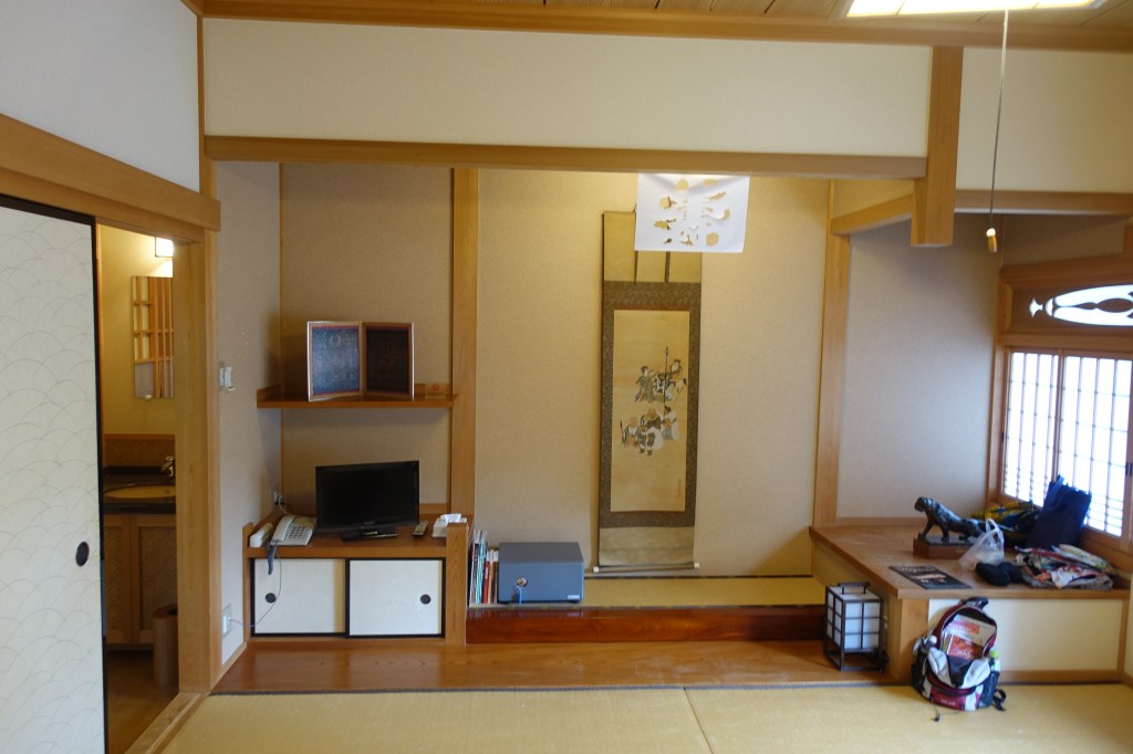 Vam fer el checkin més curiós de la nostra vida amb un dels monjos del temple, que va omplir un paper i anava ficant segellets de colors, com si fos un document de fa 300 anys, i ens van acompanyar a la nostra habitació, on disposavem d’unes vistes impressionants del pati interior del temple i que, com totes les d’estil japonès, ens va encantar.