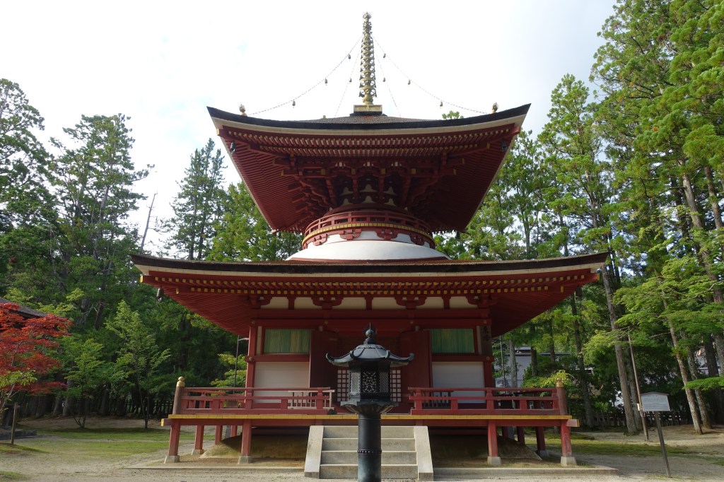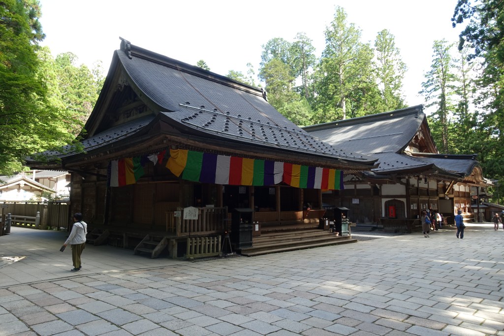 Koyasan és un recinte sagrat a les muntanyes on hom pot allotjar-se en un temple i assistir a la cerimònia matinal, així com tastar la dieta vegetariana de la que s’alimenten els monjos del temple. Una veritable experiència que es paga, però que val molt la pena. En el nostre cas ens vam allotjar al Saizenin, un temple petitó però preciós que ens havia robat el cor quan miravem opcions organitzant el viatge i que es trobava just davant d’una de les perles de Koyasan: el Danjo Garan, un recinte de vuit edificis d’una bellesa arquitectònica indubtable en un entorn que els fa encara més encantadors. L’altre imprescindible és l’Okunoin, però ja hi arribarem.