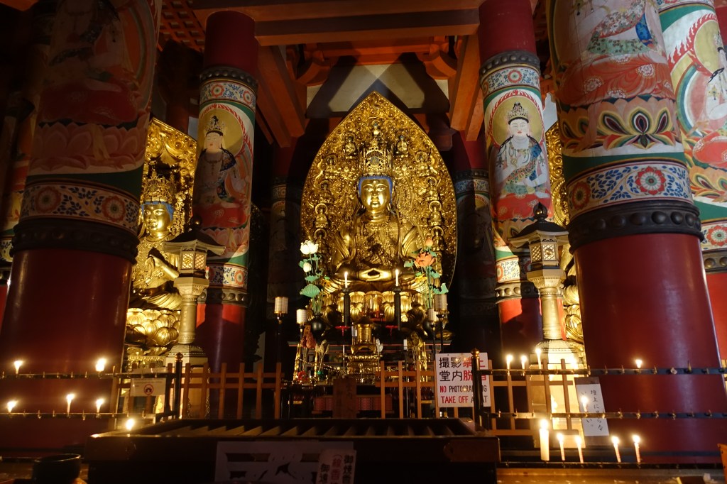 Ara si vam passejar pel Danjo Garan, que ve a ser una esplanada enmig del bosc amb uns edificis preciosos que, tot i ser majoritàriament reconstruccions del segle XX o XXI, fan patxoca. Destaquen el Kondo (el pavelló principal on s’hi pot visitar una estàtua d’un buda metge), el Chumon i el Konpon Daito, una gran pagoda pintada de vermell que ens aturavem a contemplar cada cop que passavem per davant del recinte.