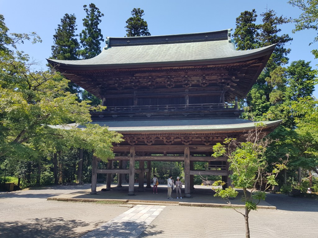 A continuació ens vam dirigir al EngakuJi o segons l’anomenava la Hiromi, el temple de les divorciades, ja que en un temps pretèrit però no massa, els homes es podien divorciar quan volguessin però les dones, si volien fer-ho, havien d’ingressar com a monges en aquest temple durant dos anys i, un cop passat aquest temps, se’ls concedia el divorci. El temple era gegant, ple de jardins preciosos i molt ben cuidats, templets més petits i una porta original del segle XIII que té el valor afegit de mostrar com éren les portes dels temples. Tingueu en compte que la majoria de temples són reconstruccions que s’han anat arreglant. De fet, ens ha explicat la Hiromi que la porta del Senso-Ji devia ser molt semblant a aquesta.