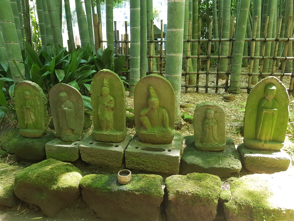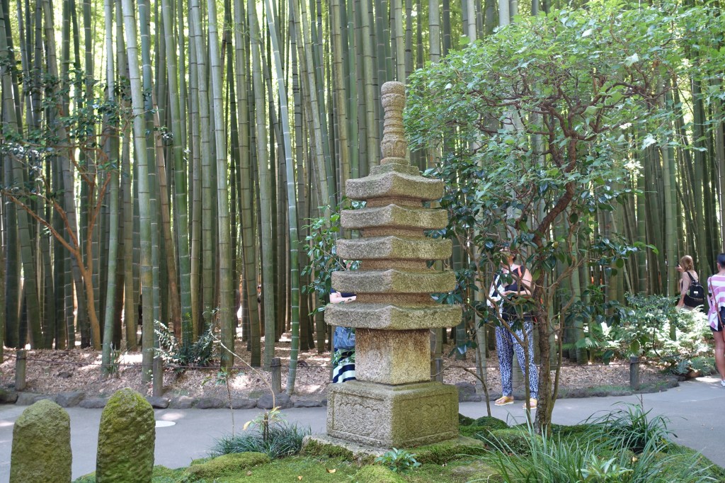 Tornant al nostre dia a Kamakura, hem de dir que tenir la Hiromi va ser un encert absolut, ja que per anar d’un temple a un altre has d’agafar trens, busos i caminar força i si no tens clar on vas, perds molt de temps. En canvi, nosaltres vam poder aprofitar el dia al màxim ja que ella ens anava passejant per optimitzar al màxim. Vam començar pel TokeiJi, que destaca sobretot per la zona exterior guanyada a la muntanya, on la Hiromi ens va explicar els diferents tipus de tombes i la utilització dels 5 elements com a forma recorrent. Vam agrair moltíssim que el cementiri estigués en un bosc i a l’obaga de la muntanya, així durant uns minuts l’efecte de la calor era menys devastador. A més va ser el primer temple on vam veure una de les imatges que ens suggeria Japó cada cop que pensavem en visitar-lo: les llanternes plenes de molsa verda.