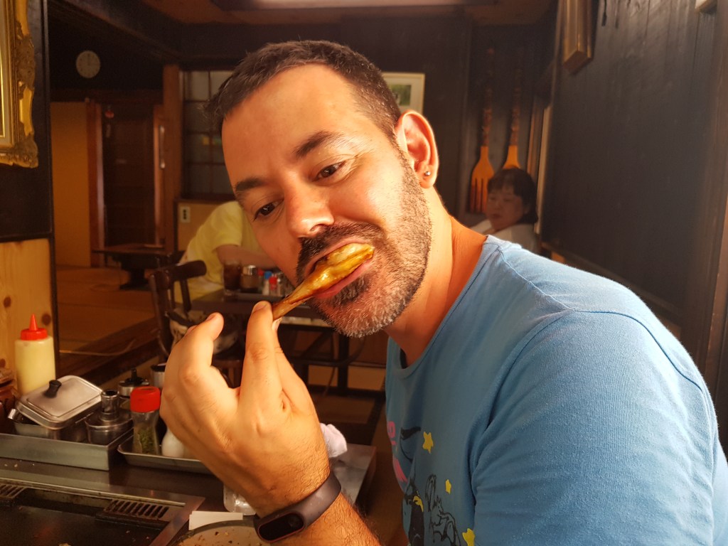 Cal mencionar que també vam tastar un altre plat de la gastronomia japonesa, aquest per primer i últim cop. I no és que fos dolent, era deliciós. però no és massa comú. Es tracta de la gyoza-aleta de pollastre. Literalment era una aleta de pollastre que, ficada dins la cuixa, duixa el farciment d’una gyoza. Una marranada boníssima.