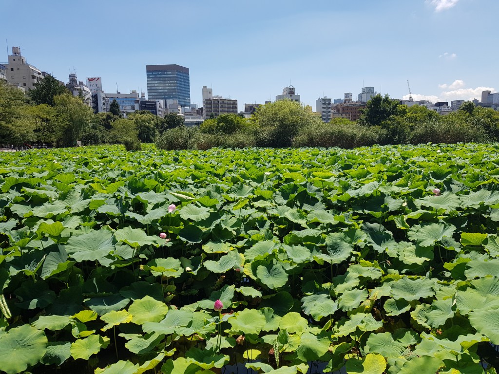L’hora de dinar s’acostava, així que vam anar a fer una volta pel Parc Ueno. Després de 40 minuts per trobar l’entrada, vam comprar un raïm per intentar no deshidratar-nos (estavem fins als nassos de buidar ampolles d’aigua i suar-les) i ens el vam menjar passejant per un dels parcs més importants de Tokyo però que a nivell turístic no té massa gràcia. En el nostre cas no teníem temps de visitar els museus i simplement ens va semblar destacable el temple, que amb el llac ple de nenúfars quedava força espectacular.
