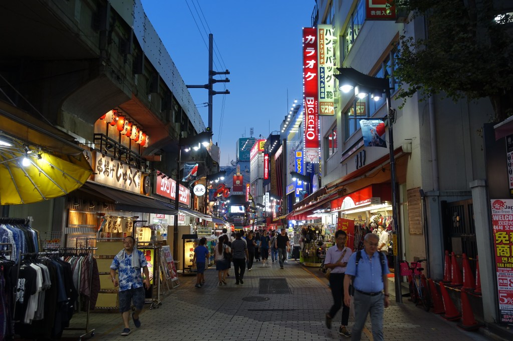 Per acabar el dia vam fer una de les coses que més ens agrada quan viatgem, sobretot quan som a un país asiàtic: visitar un mercat, en aquest cas el Mercat Ameyoko. La idea era sopar-hi, però havent berenat feia tan poc vam fer primer voltes per totes les parades intentant identificar on soparíem després, vam jugar a maquinotes on intentes aconseguir agafar un ninot amb un ganxo sense massa èxit i vam acabar sopant en una izakaya prou bona, on vam picotejar una mica ja que molta gana tampoc teníem però volíem sopar i anar a dormir d’hora perquè el dia següent seria intens.