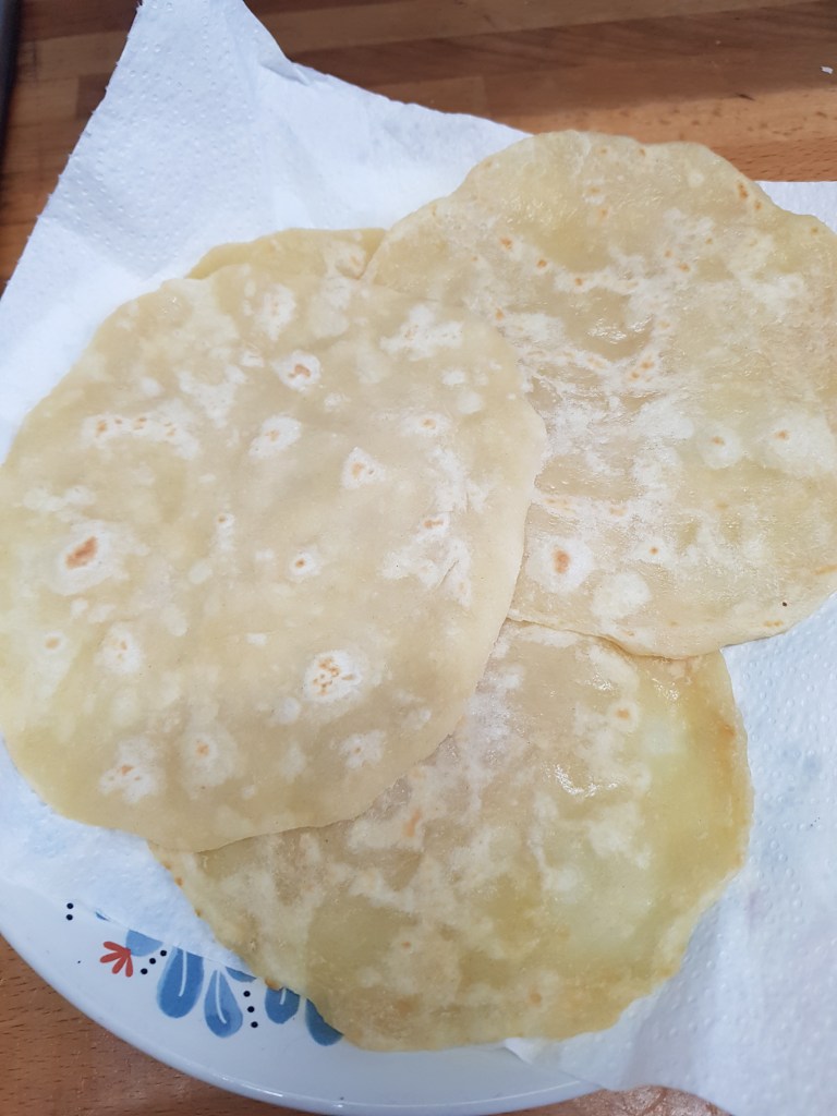 6- En una superfície amb una mica d’oli, agafa una bola gran i, amb les mans, la vas aplanant fins que quedi ben fineta, sense que s’arribi a trencar.