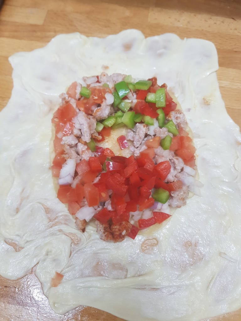 Farciment: carn picada, peix, gambes, pop, pollastre especiat