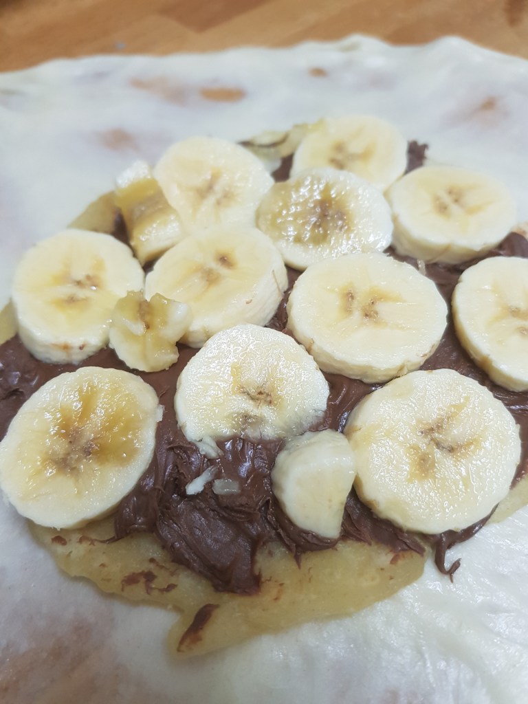 4- Escull el teu farciment. Les més habituals són de plàtan i nutella, però les fan també substituint la nutella per mars, snickers (què bones són) i coses similars. També s’hi poden afegir fruits secs, caramel o llet condensada a les de nutella.