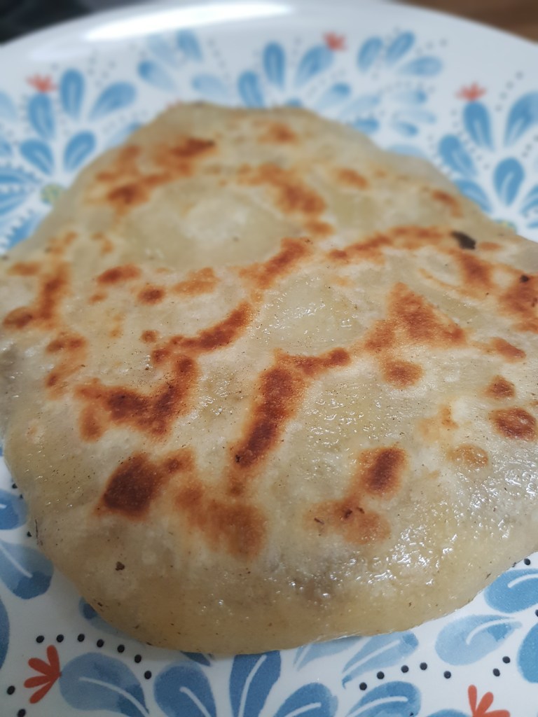6- En una superfície amb una mica d’oli, agafa una bola gran i, amb les mans, la vas aplanant fins que quedi ben fineta, sense que s’arribi a trencar.
