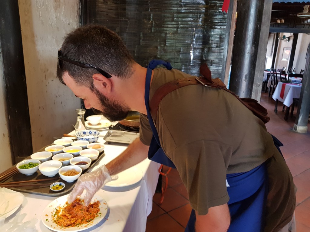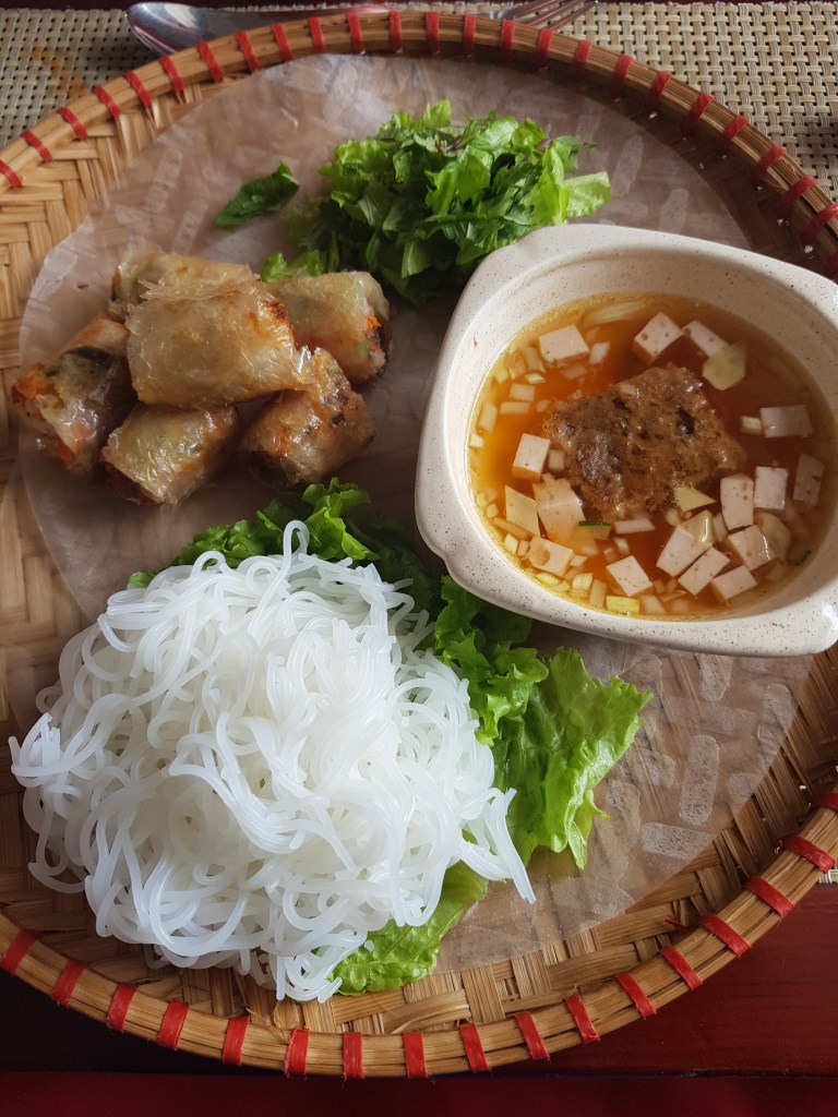 Aniríeu a un restaurant on no podeu triar el que menjareu? Nosaltres vam provar-ho a Hoian i l’experiència no podia haver estat més curiosa. Literalment et porten una safata plena de coses, una cambrera et fa un tutorial una mica desganat i a partir d’aquí tu et vas creant els teus rotllets ben farcits dels diferents ingredients que tens a la taula. Boníssim.
