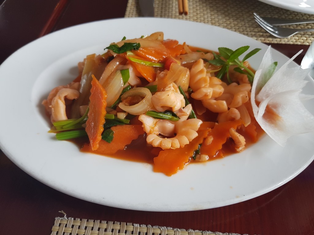 És on vam fer el curs de cuina i va ser un encert absolut. Vam estar tot el matí amb una cuinera del restaurant primer visitant el mercat i entenent els ingredients que fan servir per cada gust o textura per, més tard, anar cap al restaurant i cuinar un menú complet: sopa de fideus, rotllets fregits, una truita de gamba i peix a la graella embolicat en fulles. Us ho recomanem molt, com a experiència gastronòmica i també per saber més de la seva cultura i forma de fer.