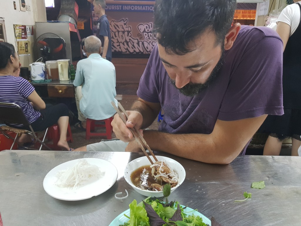 A Vietnam podeu menjar a paradetes al carrer, a restaurants, a mercats… arreu menjareu bé, però la recomanació que us farem és anar on veieu locals. Probablement us endureu sorpreses molt positives, com que un deliciós arròs amb sèpia i un amb vedella i salsa us costin (tots 2!) l’equivalent a 2 dòlars. Hoian és la ciutat amb millor fama i trobareu restaurants espectaculars, ara bé, pagareu força més. Nosaltres vam aprofitar per fer un curs de cuina i el vam gaudir moltíssim. Vam anar al mercat a triar els productes i després vam estar 2 hores aprenent i menjant el que havíem cuinat. Molt recomanable.