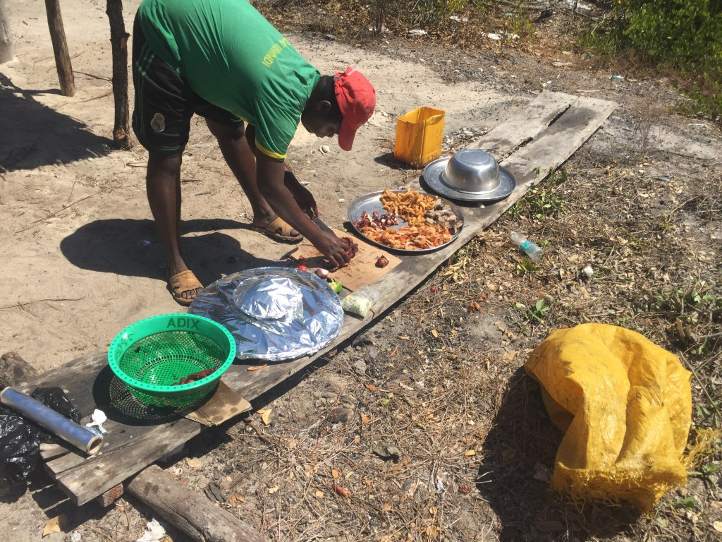 Vam passar pel banc de sorra a recollir la resta de companys (cada vegada quedava menys sorra!!), vam fer un últim bany a una mena de manglars i vam anar a dinar. Quin dinar!! Arròs amb salsa, amanida, patates fregides i començava el banquet: pop, calamar, tonyina, llagostes, cigales…