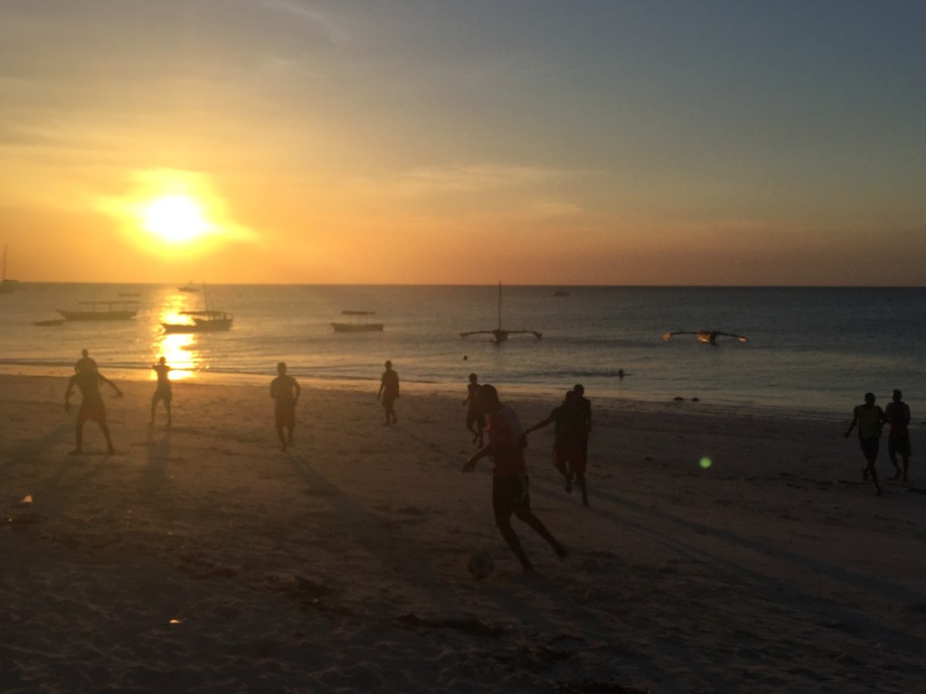 Vam tornar cap a Nungwi a tastar la llagosta (sorprenentment barata i deliciosa) i vam passejar per la zona, agraint no ser en un hotel dels enormes, sinó a la zona dels bungalows, on no hi havia massa gent i si un bon tros de platja on seure-hi, escriure o simplement contemplar les vistes. I és que ens esperava una altra posta de sol preciosa, amenitzada amb partits de futbol a la sorra de la platja. És d’aquells dies que penses “no marxaria mai d’aquí”.