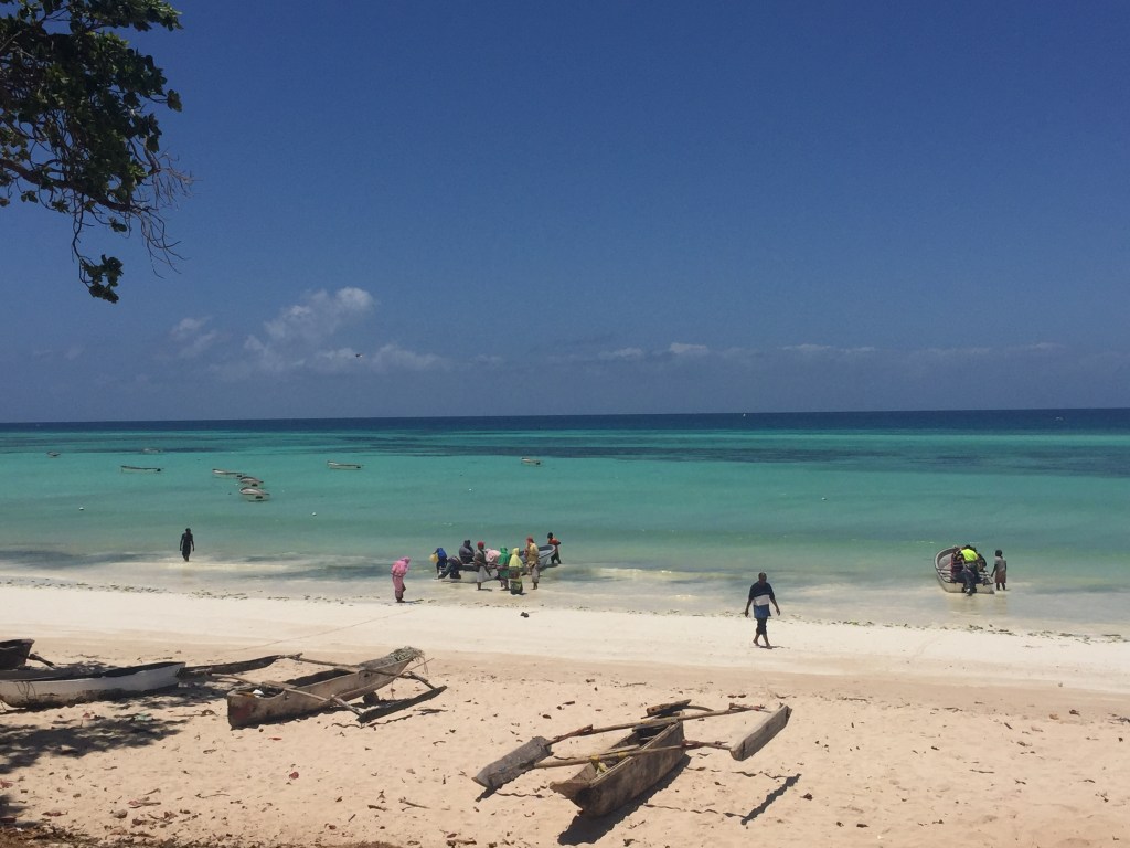 Ens vam llevar a les 5.15h, tots recremats per sol, vam deixar els trastos a l’hotel dels amics de Madrid, ja que el nostre l’havíem de deixar aquell matí. I tots sis amb el Karembeu vam pujar a la furgo i cap a Kizimkazi. Hi vam arribar cap a les 8.15. A l’arribar veiem que allò semblaven les Rambles, estava pleníssim de gent – hi havia excursions d’hindús, tots amb l’armilla salvavides – i, literalment, s’havien acabat les barques! Sort que el Karembeu n’havia reservat una per nosaltres el dia abans.