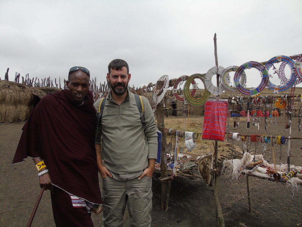 El Godfrey ens va deixar amb el guia Massai que ens acompanyaria. La visita va consistir en fer unes cançons i balls amb els Massais, veure com saltaven i fer el ridícul intentant fer el mateix, visitar una casa per dins, l’escola amb tots els nens i nenes del poblat i la compra de souvenirs que feien les dones. En general ens va semblar bastant horrible.
