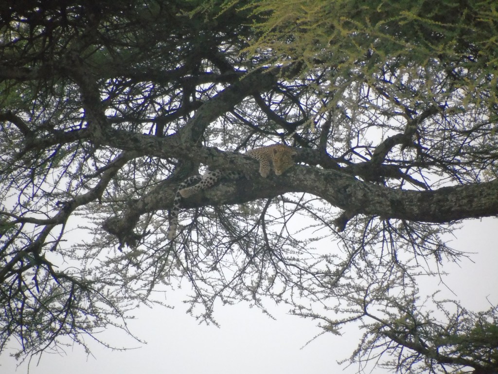 Ja dins el Parc, després d’un seguit d’esplanades amb gaseles de Thomson, zebres i nyus, vam començar a veure ienes i el gran moment va ser descobrir el nostre primer lleopard penjat d’un arbre.