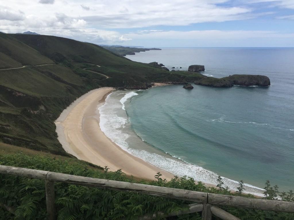 Torimbia per contra és una platja semicircular enorme a la que arribes des de dalt i pots seure en un banc a contemplar-la o baixar pel caminet i sucar-te. Molt bonica i molt encaixada en la natura.