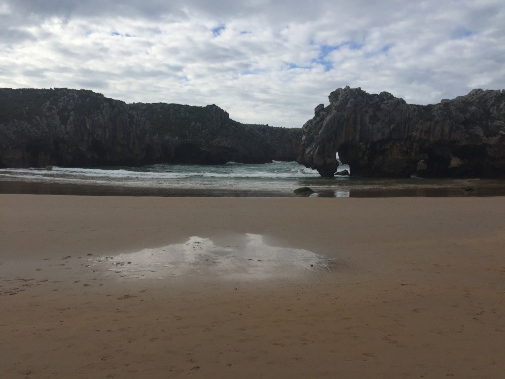 La platja de Gulpiyuri és una platja minúscula, on la gràcia és la creació d’una espècie de llacuna entre les pedres que depèn de l’època de l’any va entrant i sortint. Si puges, observes que això es deu a que en si no és una platja sinó una entrada de l’oceà. La platja és interior amb les restes del que deixa entrar la formació rocosa.