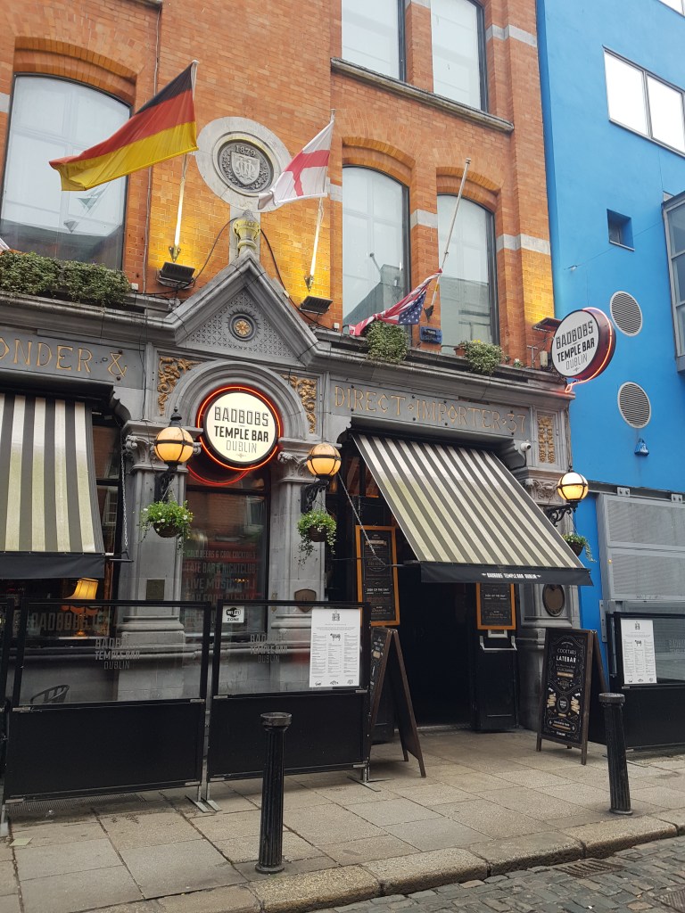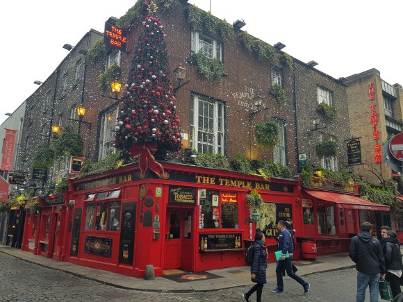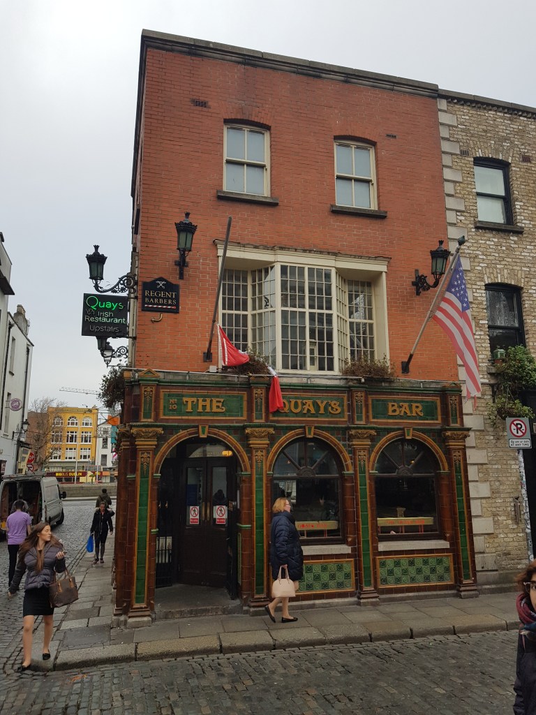 Al contrari del que molta gent creu, el nom no li ve per ser el Temple dels bars ni res així. De fet, el seu nom vol dir literalment “el camí de Temple” ja que era el recorregut que Feia Sir William Temple, propietari dels terrenys, per anar cap al Liffey. Ara bé, si voleu trobar pubs i restaurants a Dublin, aneu-hi perquè n’està farcit. Paradoxalment, no us recomano el pub que porta el nom del barri, ja que és extremadament turístic amb tot el que comporta: qualitat regular i preu altíssim. N’hi ha d’altres com el Bad Bobs o l’Old Storehouse on nohi ha tanta gent, s’hi menja de nassos i hi fan concerts o shows molt interessants. De fet, el pub més antic de Dublin no és al Temple Bar sinó més a l’oest seguint el Liffey. És el Brazen Head i a banda de la seva peculiar història, és impressionant i s’hi menja el millor estofat irlandès de Dublin. Com a última recomanació respecte al Temple Bar, si decidiu dormir-hi, assegureu-vos que l’habitació està convenientment aïllada, ja que sinó a les nits potser no descanseu massa. Sinó podeu allotjar-vos a prop però no ben bé dins. Només el fet de creuar el Liffey, l’ambient és molt més tranquil, per exemple.