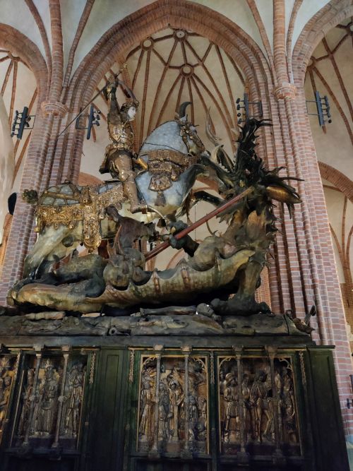 Quan passeges pel Gamla Stan hi ha dos edificis que predominen sobre tota la resta: el Palau Reial i la Catedral. Vam tenir la mala sort que la Catedral estava en obres per restaurar-la exteriorment però, fins i tot així, només per l’interior ja va ser un dels llocs que més vam gaudir. A sobre vam tenir la sort de que hi fèien un concert d’orgue i vam gaudir-ho doblement. És d’estil gòtic i les seves parets i columnes de maó li dónen un aspecte totalment allunyat del que estem acostumats quan voltem per Europa visitant esglésies i catedrals. Tanmateix, no només és important i rellevant com a edifici, sinó que hi trobem una estàtua de Sant Jordi i el drac preciosa que a més serveix de reliquiari i la pintura més antiga de la ciutat, el Vädersolstavlan.