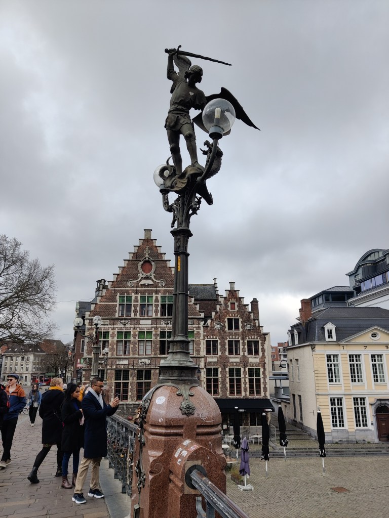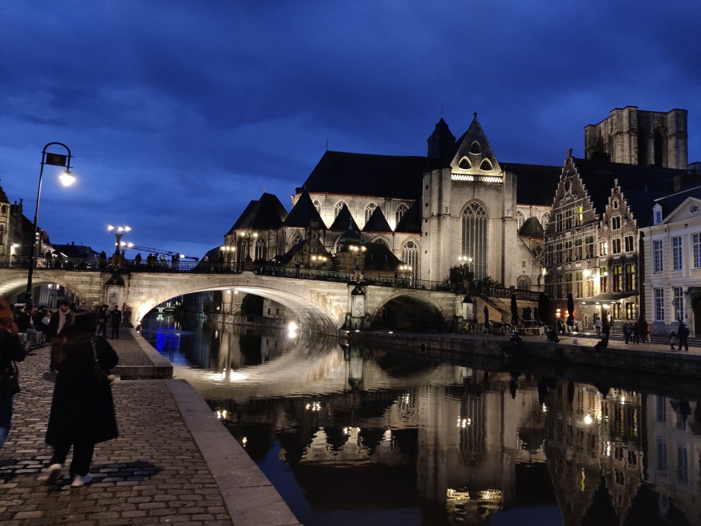 No hi ha millor ubicació a Gant que el Pont de Sant Miquel. Mentre el creues, tens la Catedral a una banda i Sant Nicolau a l’altra i a la vegada estàs passant per sobre del riu que et condueix als molls de Korenlei i Graslei. Tot i ser un pont modern, construit a inicis del segle XX, no desentona gens amb l’entorn i de fet algunes de les millors fotografies de la ciutat les podeu fer des d’aquí. A dalt amb les 3 torres de la ciutat a banda i banda o des de sota aprofitant el pont, el reflexe del riu o fins i tot l’estàtua de Sant Miquel que el corona al seu punt central.