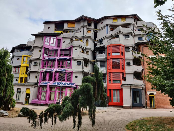 Com passa una mica a Viena amb les Hundertwasserhaus, el barri de Les Grottes va agafar com a inspiració a Antoni Gaudí i el modernisme a l’hora de construir algunes de les cases del veïnat. En el cas de Ginebra, però, no es tracta només de 2 o 3 cases sinó que conformen una regió important del barri i no només es tracta d’un intent d’imitar, retre homenatge o lloar les virtuts del geni de Reus sinó que van lligar una revolució arquitectònica amb un intent de sortir-se de la rigidesa i l’organització de la societat suïssa. Les Grottes es situa per sobre de l’estació central i des que et rep el bus vermell i les parets decorades, ja tens clar que estàs entrant a un lloc que no té res a veure amb la resta de la ciutat. No és estrany doncs trobar establiments, escoles bressol i edificis amb una inspiració gairebé mediterrània o fins i tot amb un tarannà una mica hippy. És evident que comparar La Pedrera amb un edifici de Les Grottes no té cap mena de sentit però en aquest cas, al contrari que a Viena, si que vaig veure més formes o elements en els edificis que m’hi van recordar.