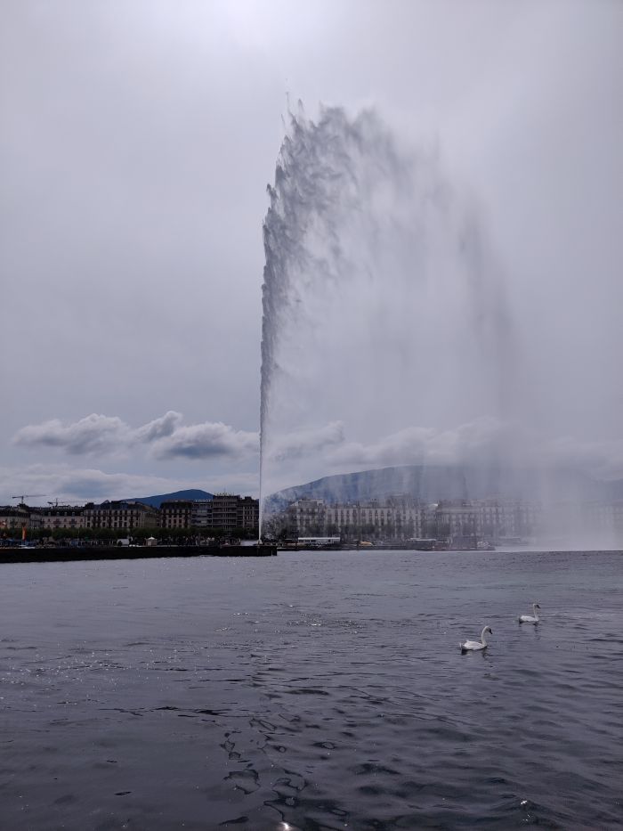 El Jet d’Eau és, probablement, el símbol més emblemàtic de la ciutat de Ginebra. Visible pràcticament des de tot arreu, és realment espectacular i més encara a mida que t’hi acostes. Tot i això, la meva recomanació dels llocs des d’on millor es veu són els Bains des Paquis, Les torres de la Catedral i agafant un barquet-bus per creuar d’una banda a l’altra del Llac Leman. El més curiós del Jet d’Eau (traduït literalment “el raig d’aigua”) és que es va construïr amb una funció totalment pràctica, la de limitar la pressió de la conducció d’aigua que es feia servir en la maquinària industrial (en concret en la indústria rellotgera). El 1891 es va decidir convertir-lo en monument, fer-lo més espectacular i ara mateix, perquè us feu una idea, parlem d’un raig d’aigua de més de 140 metres d’alçada que pren una velocitat de gairebé 200 km/h llançant 500 litres d’aigua per segon. Una dada que em va deixar corprès i esmaperdut és que l’aigua que es manté a l’aire impulsada pel Jet d’Eau pesa, ojo la dada, 5 tonelades!