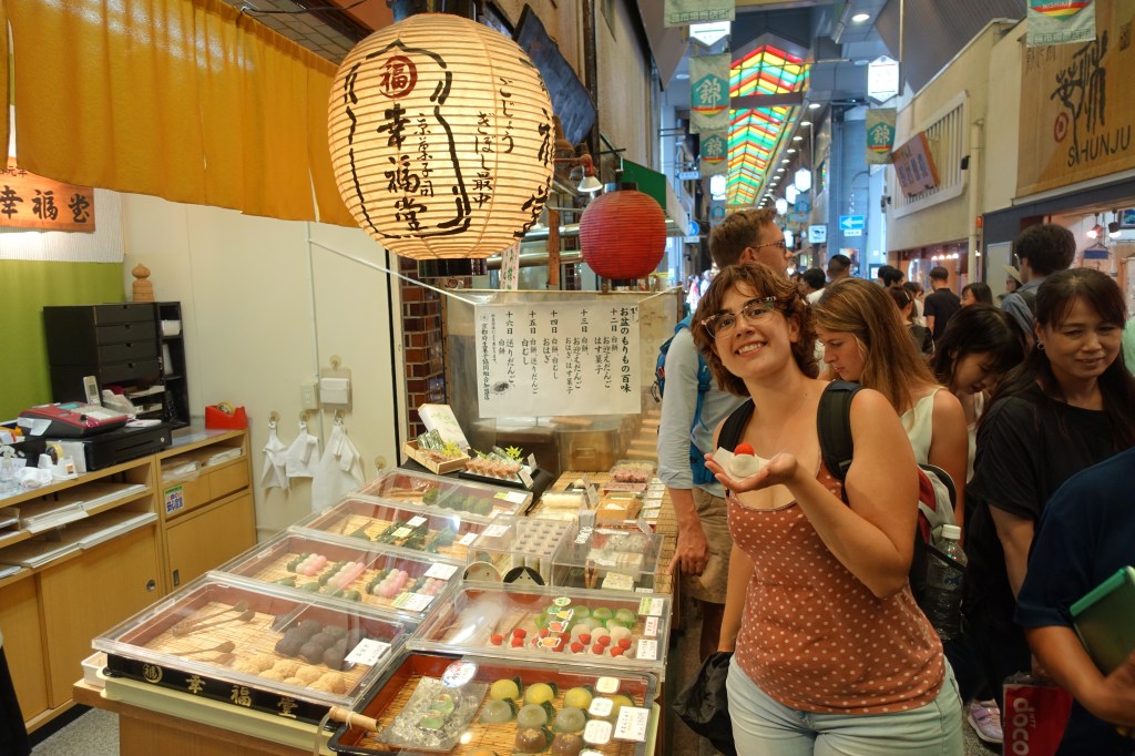 Si una cosa s’ha de veure a cada ciutat o poble de Japó, són els mercats. És una de les experiències visuals, olfactives i gastronòmiques per les que val la pena fer el viatge. Sushi, carn Kobe, llagosta, okonomiyaki, pintxos de coses vàries, arrebossats de qualsevol cosa imaginable amb el cruixentíssim panko… És cert que el Mercat Nishiki en concret no té massa espai on aturar-te i degustar els plats, però tot i així és una visita obligada si aneu a Kyoto.