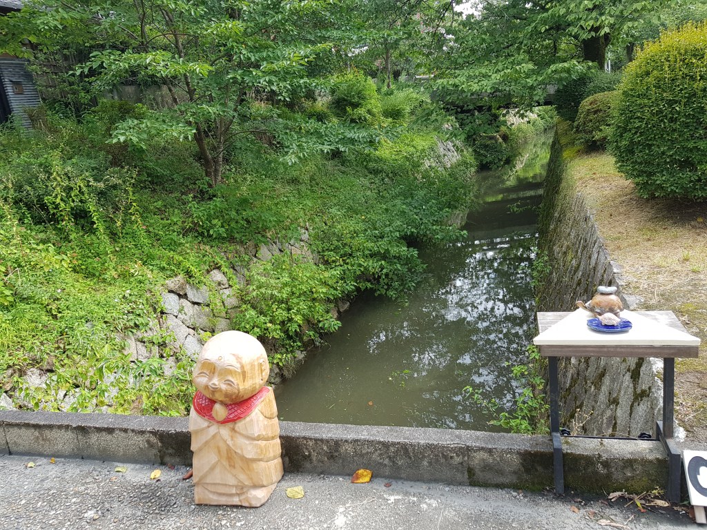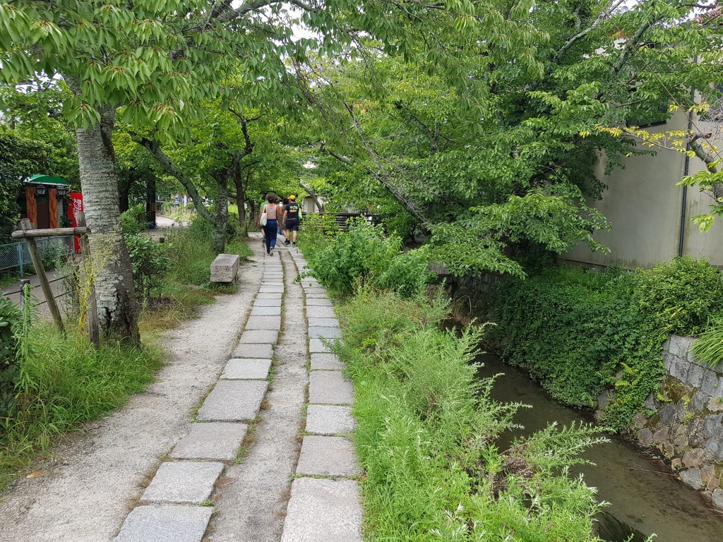 Un caminet a la vora del riu on et vas trobant temples i altres relíquies. Què més es pot demanar. Ah, i una mica d’ombra per gaudir d’un deliciós gelat de sèsam negre. És cert que alguns dels temples t’obliguen a allunyar-te del camí, però és una delícia passejar-t’hi i anar entrant als temples més importants o, simplement, als que més et cridin l’atenció. Nosaltres així ens vam endur més d’una sorpresa (agradable). Pel camí també vam trobar algunes botigues precioses de detallets de paper, tot molt japonès.