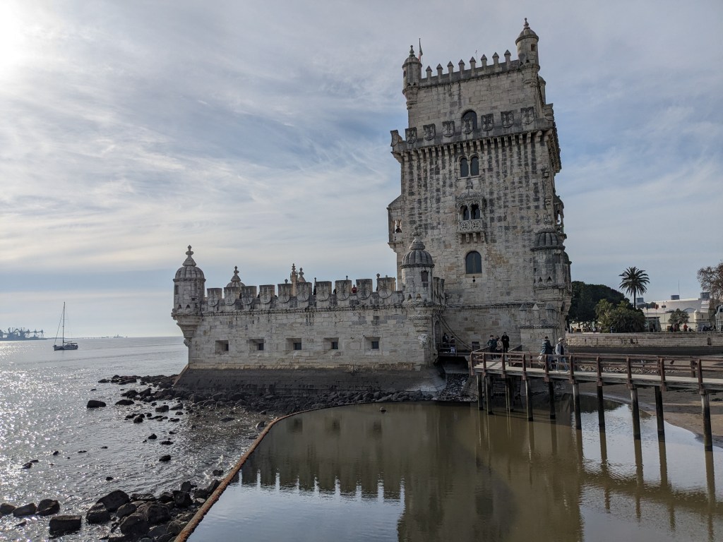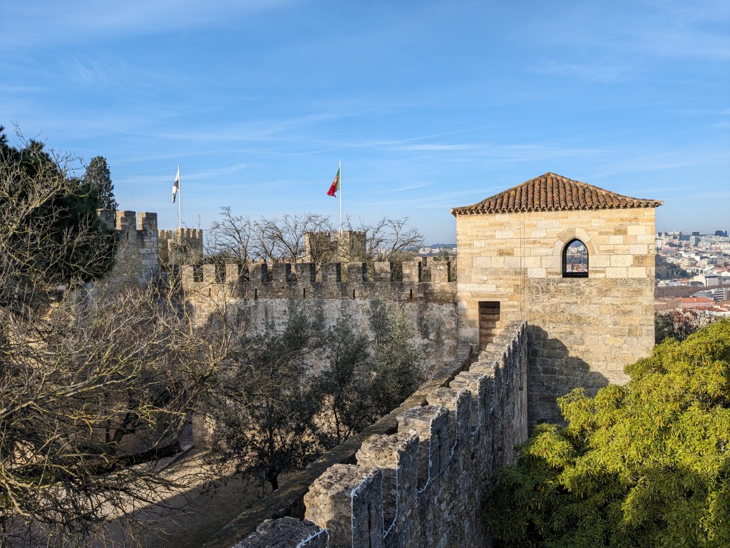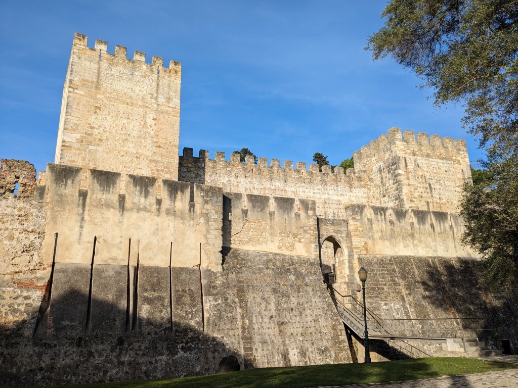 Al capdamunt del turó més alt de la ciutat, coronant el pintoresc barri de l’Alfama, trobem una de les joies de la ciutat a molts nivells: històric, arquitectònic i, perquè no, com un dels millors miradors naturals de la ciutat. L’edifici que es pot visitar avui en dia té poc de l’antic Castelo dos Mouros que es va recuperar amb l’ajuda dels croats a mitjans del s XII ja que el terratrèmol de 1755 el va deixar en runes, però la reconstrucció va respectar molt l’estructura original i de fet es poden visitar al jaciment arqueològic part dels ciments. Tot i tenir parts no originals, passejar pels jardins, pujar a les torres o gaudir de les vistes del periscopi de Da Vinci situat a la Torre d’Ulises fan que la visita al Castell sigui meravellosa, sobretot si hi aneu ben d’hora al matí abans que els eixams de turistes espantin els ànecs i paons que hi viuen.