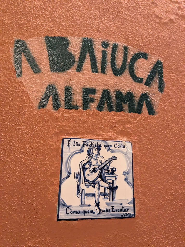 És probable que anar a un sopar amb fado a Lisboa pugui tenir una part turística com quan es fan sopars amb tablao flamenco a Barcelona, però que el propietari del local s’arranqui a cantar a mig concert de forma inesperada, no té preu. El sopar va estar bé, no el millor que he fet els cops que he estat per allà però bo. El concert, tot i les interrupcions d’alguns turistes insufribles, va ser brutal. La Greta estava tan concentrada que gairebé li havíem de posar el menjar a la boca de ten embadalida com estava. El fado és melancolia, amor per un país que gairebé ja no existeix i la nova Portugal posterior a la Revolució dels Clavells així que és tan enriquidor anar a un concert de fado com visitar algun dels museus de la ciutat.