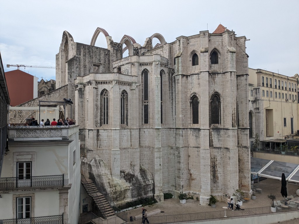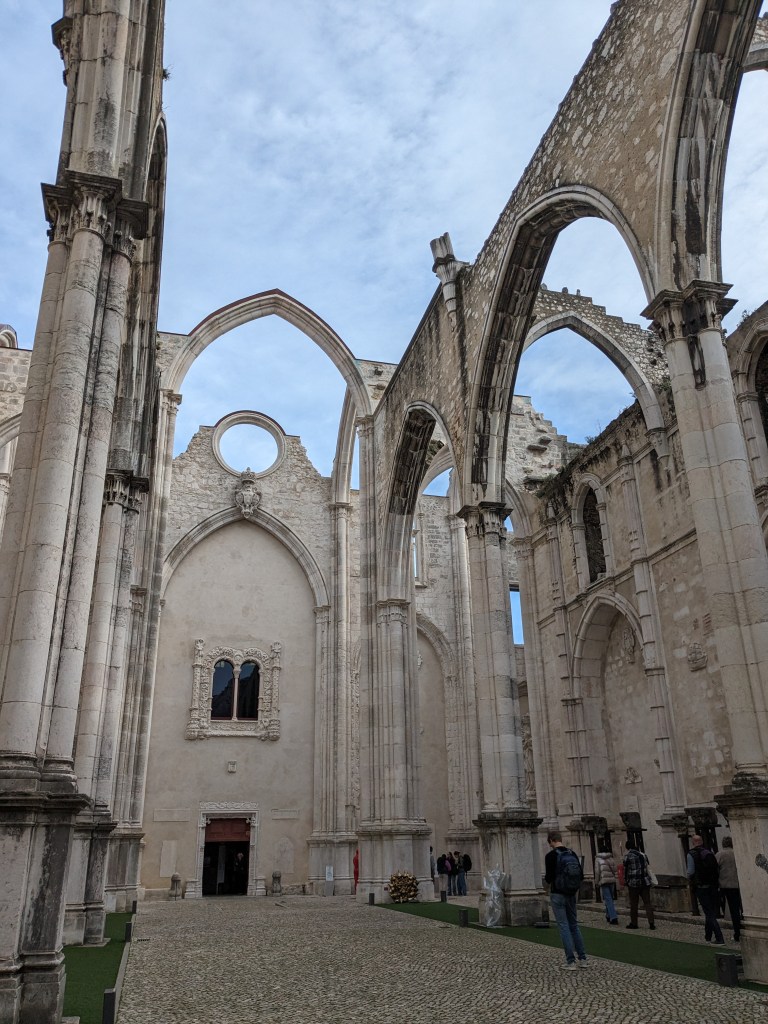 Antigament va ser l’església gòtica més gran de la ciutat, però el terratrèmol de 1755 la va tirar a terra, deixant-la amb l’aspecte actual. Tot i que devia ser preciosa sencera, l’efecte que provoca és realment impactant i la idea de posar-hi el Museu Arqueològic al seu interior és una mostra més del tarannà de la ciutat, renovador i profundament transgressor. La part exterior del museu no és res de l’altre món però quan entres a la part coberta, no només les peces de la col·lecció sinó sobretot l’audiovisual (super ben fet i molt interactiu) fan que surtis molt satisfet i molt ben informat de l’edifici i de part de la història de Lisboa.