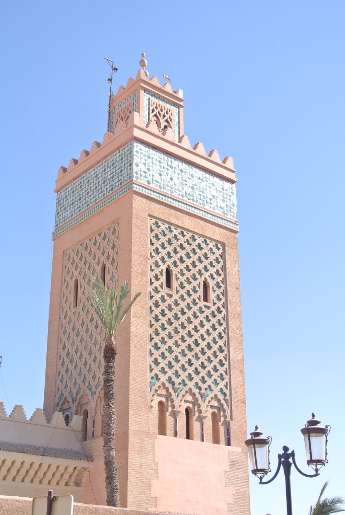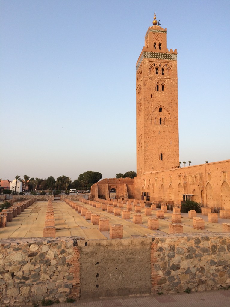 Per mi és la imatge més icònica de Marrakech juntament amb la Menara i la Plaça Djemaa El Fna. És la mesquita més important de Marrakech i era una de les més importants del món islàmic quan es va acabar, al 1158. No s’hi pot accedir si no ets musulmà, però des de fora és preciosa i a nosaltres en particular ens va regalar una de les imatges del viatge, ja que hi vam anar durant el ramadà i a l’hora de la posta de sol, rius de fidels abandonaven la Koutoubia i es dirigien a la Plaça a menjar a les paradetes o extreien de les seves robes paquets embolicats en paper de plata i es posaven a menjar amb ganes. El Minaret recorda molt a la Giralda, preciós.
