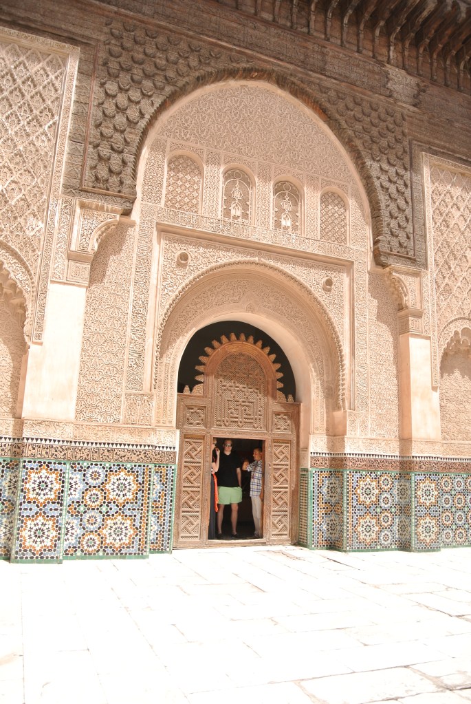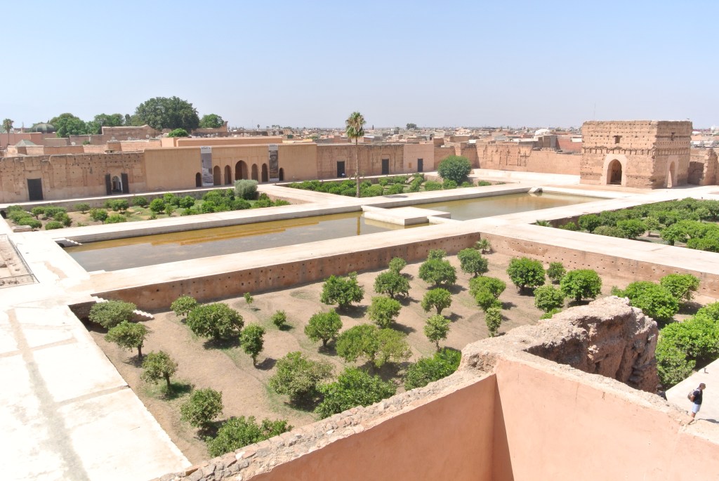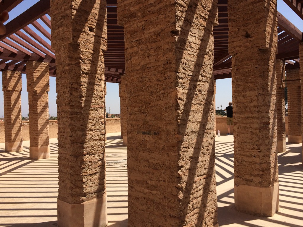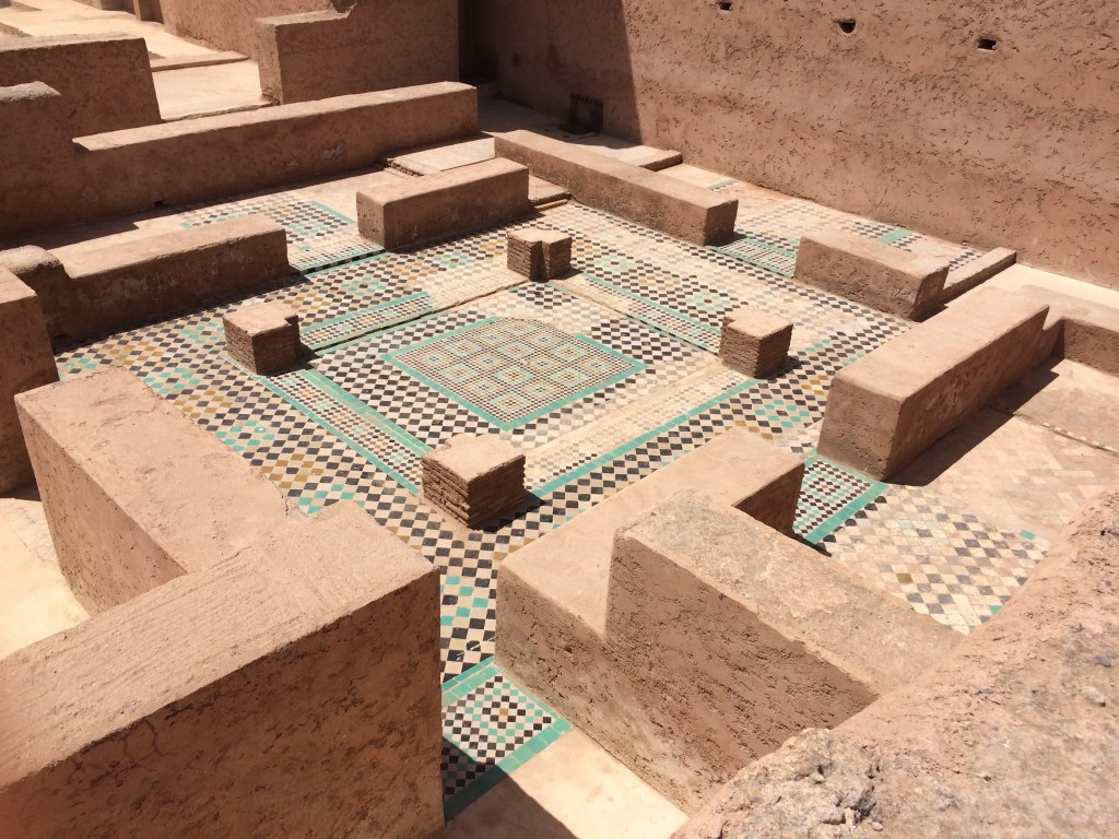 Construït per commemorar la victòria a la Batalla dels 3 Reis contra els portuguesos a petició d’Al-Mansur i inspirat en l’Alhambra de Granada, havia estat un palau majestuós amb més de 300 habitacions decorades amb or i turquesa. El “problema” és que ara bàsicament en queda el pati i l’estructura, gràcies a algun dels murs interiors. Havíem llegit en alguna guia que és com el Colisseu o l’Acròpolis d’Atenes i és cert que manté l’esquelet i alguns detalls, però no és ni molt menys tan impressionant com els altres dos. De totes maneres en recomanem la visita, a més hi podeu veure el minbar de la Koutoubia i és realment bonic.