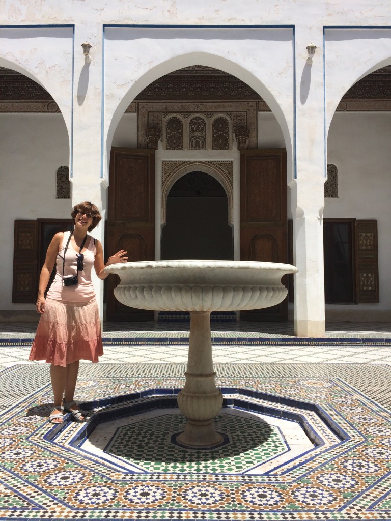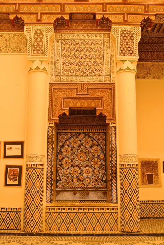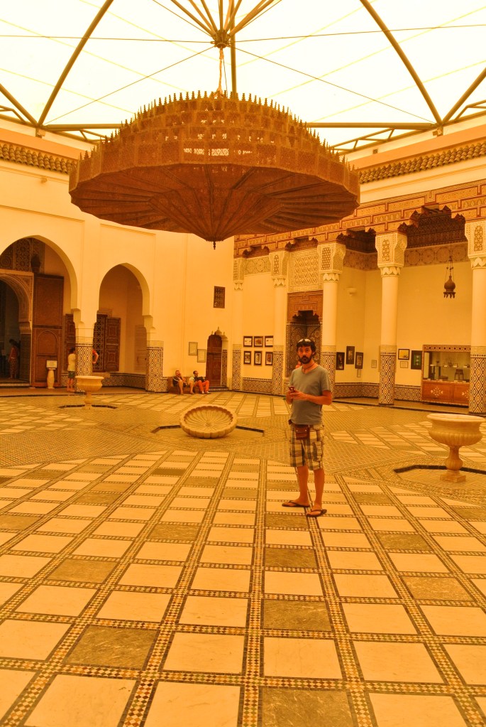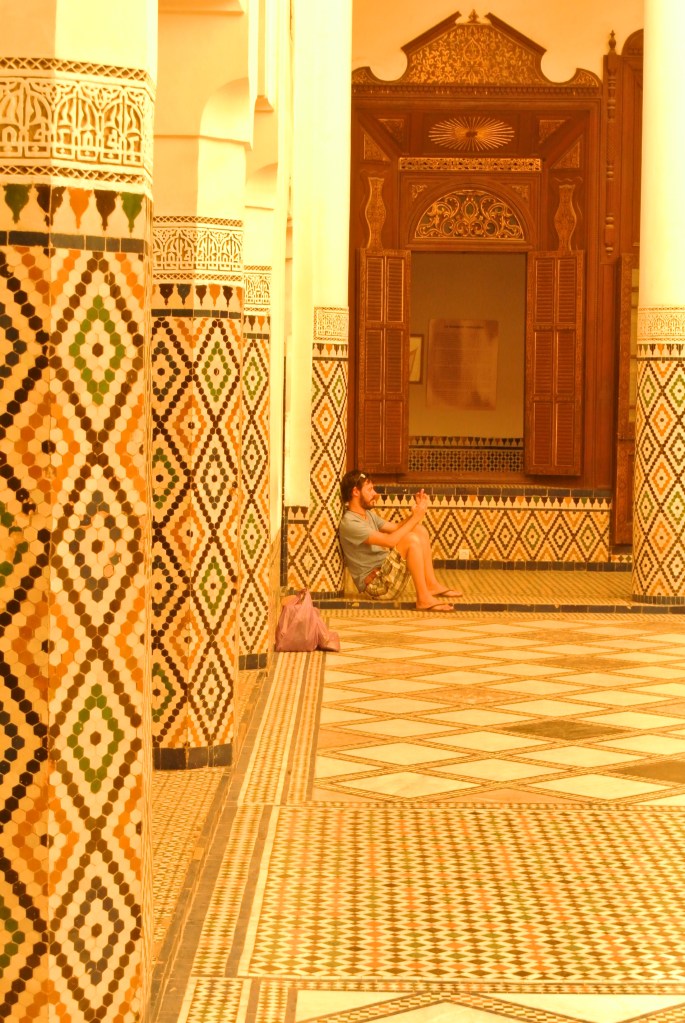 Tot i que l’entrada no ho fa pensar massa, estem davant d’una de les obres arquitectòniques més rellevants de Marrakech. És cert que està una mica buit pels saquejos posteriors a la mort del visir, però fa patxoca. Els terres, els sostres, les portes… fins i tot té una zona ajardinada molt bonica. El nom del palau significa “el Palau Bell o Bella”, no se sap si en referència a que el Palau ho era (i ho és) o perquè allà hi habitaven les 4 dones i les 24 concubines del visir Abu Bou Ahmed (la seva història és molt curiosa, ja que era un esclau i va arribar a ser visir).