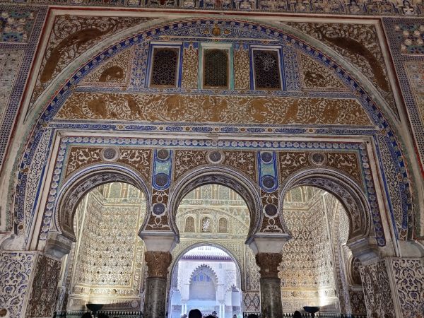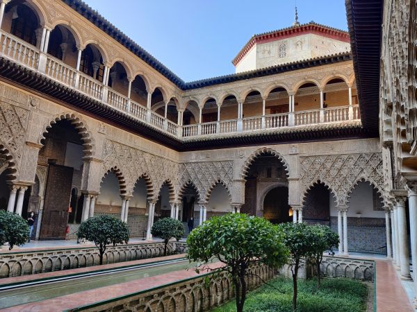 Els Reales Alcázares de Sevilla, que és el seu nom complet, són un conjunt de palaus construits sobre edificacions romanes i visigòtiques a partir del 913 i a través de la seva història i els diferents estils dels que es nodreix es pot pràcticament seguir la història de la ciutat de Sevilla. L’accés es realitza per la Puerta del León on hi havia una imatge d’aquest animal, ara substituïda per una representació en azulejos de Triana i cada pati i palau pel que creues és més impressionant que l’anterior. La visita us durà unes 2-3 hores però no us avorrireu en cap moment. El Patio de las Doncellas i La Sala de los Embajadores són per mi, la millor representació de l’art musulmà a la ciutat, una veritable joia. Els jardins, a banda de ser gegants, ténen racons encantadors com la Galería de los Grutescos i La Fuente de Mercurio, per on podries passar-t’hi dies passejant.