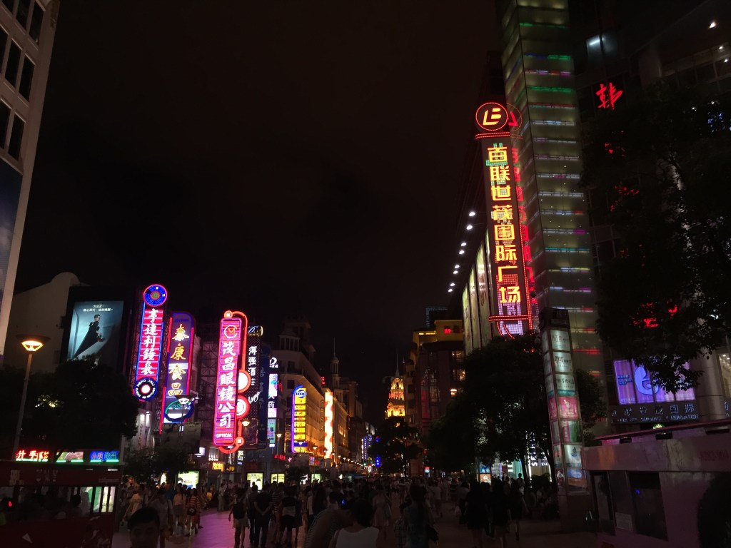 Uneix la Plaça del Poble amb el Bund, tot i que la part més interessant és la que toca a la plaça i on hi podeu passar hores veient la quantitat de coses totalment diferents i exageradament surrealistes que podeu comprar-hi. De nit és impressionant de veure, amb els cartells il·luminats i els rius de gent que es mouen d’un cantó a l’altre. Al principi pensàvem que era cosa nostra i que anàvem on va tothom. Als pocs dies ens vam adonar que el tema és que són tants, que hi ha gent sempre i a tot arreu.