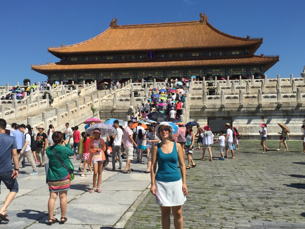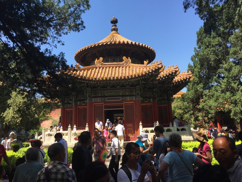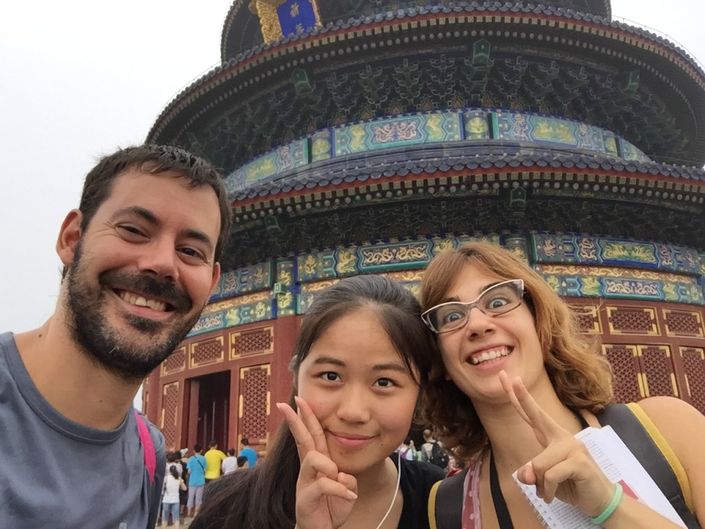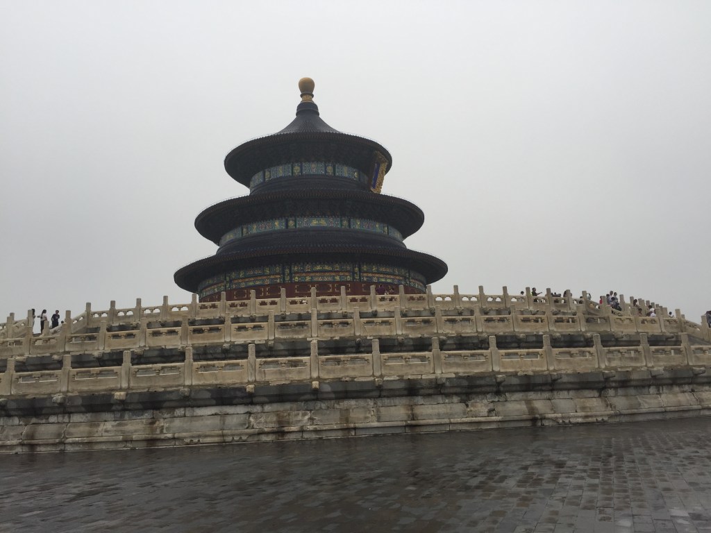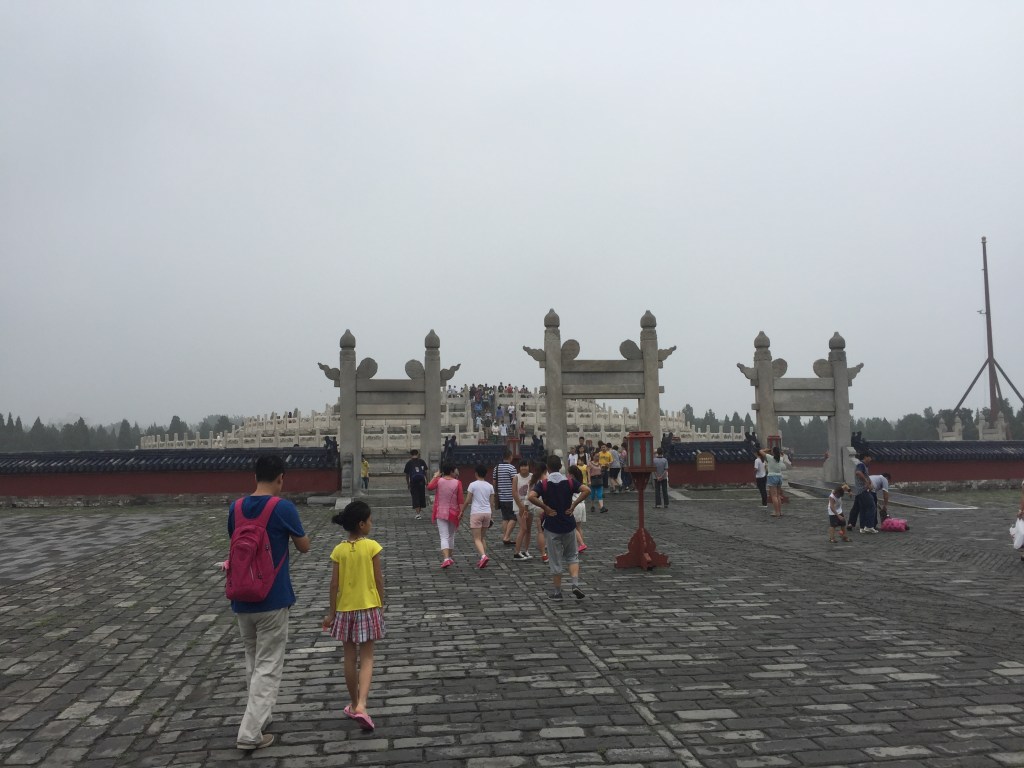 Un dels recintes més importants de Beijing, juntament amb la Ciutat Prohibida i el Palau d’Estiu i, com tots ells, és gegantí (de fet ens van explicar que és 3 vegades la Ciutat Prohibida). Es va construir el 1420 i s’utilitzava per demanar bones collites i per agrair-les quan s’aconseguien. La tradició explica que dos cops l’any una processó sortia de la porta de Qianmen i es dirigia al Temple del Cel, on es realitzaven les cerimònies. El recinte es divideix en dues parts: el Cel, de forma circular com es creu que és en la mitologia xinesa i la Terra, de forma quadrada; Una cosa que ens va sorprendre molt és que, com sol ser costum, està construït totalment de fusta i sense utilitzar un sol clau. Els 4 pilars centrals representen les estacions de l’any i els 12 pilars de segon cicle, els mesos. Tot pensat.