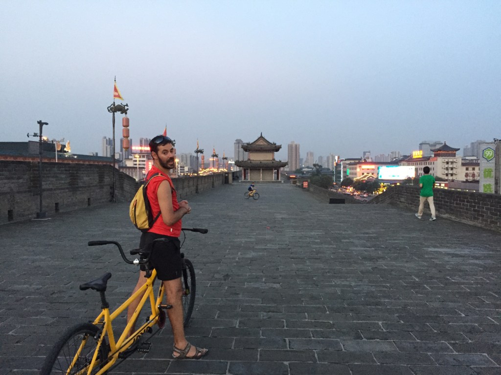Molta gent va a Xi’an pels guerrers i s’acaba quedant per la seva part antiga. Aquest podria ser el resum del que ens va succeir. Pensavem descansar una mica aprofitant l’estona que no estiguessim fent la visita als guerrers de terracota i no vam parar un segon. I una gran culpable va ser la muralla, que es manté en un estat excepcional i des d’on tens unes vistes espectaculars de la ciutat, així com de l’exterior, totalment diferent i renovat. Ara bé, si voleu fer com nosaltres i feu una ruta en bicicleta per sobre la muralla, assegureu-vos que estiguin en bon estat i no agafeu un tàndem. Sembla molt divertit però al final no ho és tant.