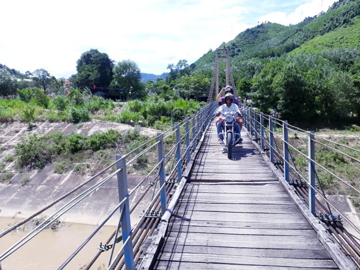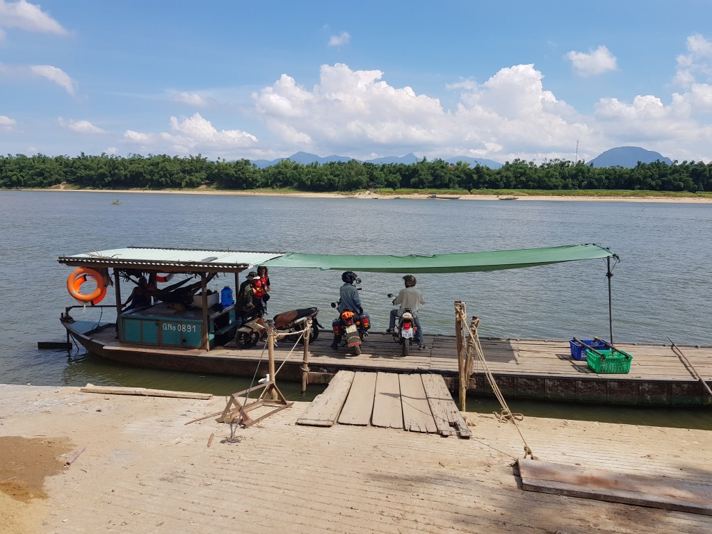 Vam fer un breu passeig per la zona mentre no arribava el Tri i, ara si, ens posàvem en marxa en vers el nostre segons dia recorrent el centre de Vietnam en moto. Els objectius del dia éren un salt d’aigua que ens va assegurar que ens encantaria, les runes de My Son i fer una volteta per la selva on, presumiblement, trobaríem plantacions de pinyes. Algunes d’aquestes atraccions van estar realment bé però el que més recordo avui d’aquell dia és creuar amb la moto entre arbres altíssims, l’horitzó difuminat de la calor, els ponts que criuxien sota el pes de la moto i una travessa en barquet. Comencem: